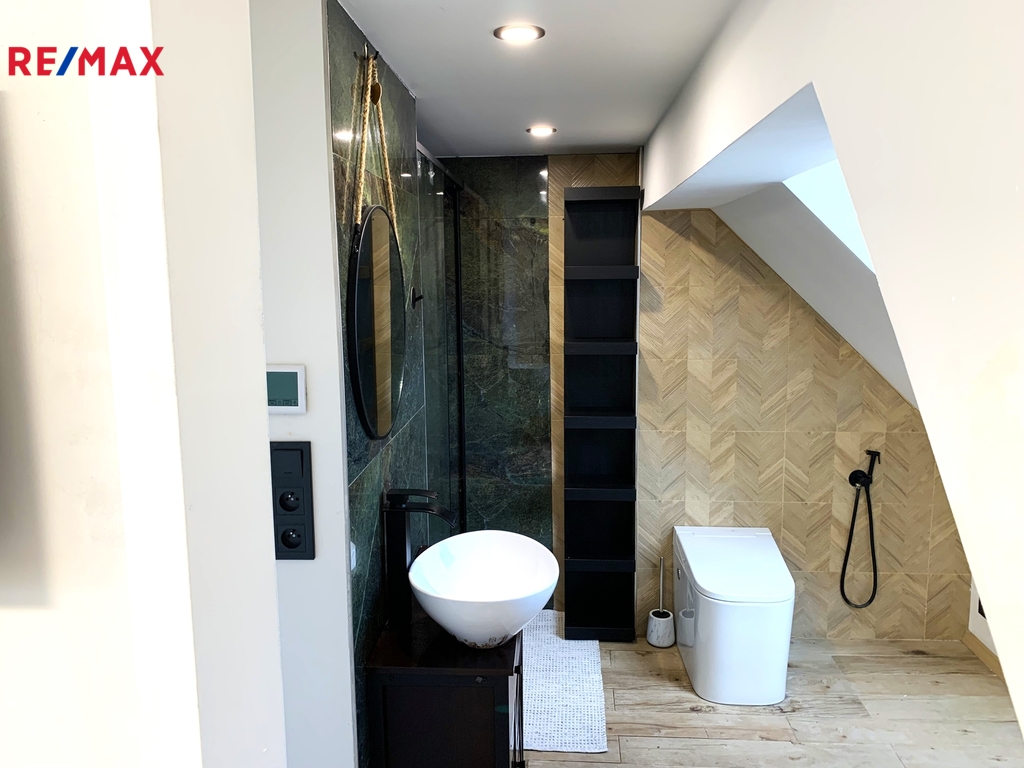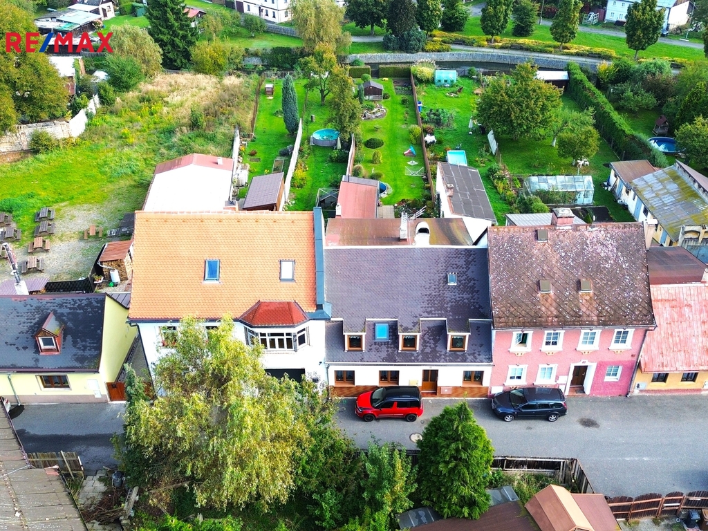 Nabízíme k prodeji prostorný stylový řadový dům z 18. století s vlastním pozemkem o výměře 499 m², který se nachází v klidné části města Mimoň. Nemovitost nabízí panoramatický výhled na zříceninu hradu Ralsko a v blízkosti severní hranice města navazuje Chráněná krajinná oblast Kokořínsko. Dům prošel rozsáhlou rekonstrukcí a je připraven k dokončení podle představ nového majitele. Aktuální dispozice zahrnuje tři podlaží a menší sklepní prostor. V přízemí se nachází prostorná garáž se dvěma vraty, která umožňují pohodlný průjezd na zahradu umístěnou za domem. Dále je zde rozlehlá vstupní hala, samostatný pokoj a praktický úložný prostor pod schodištěm. První patro tvoří otevřený a vzdušný obytný prostor s moderní kuchyní vybavenou vestavěnými spotřebiči a samostatným velkorysým kuchyňským ostrůvkem. Na kuchyň navazuje jídelna a obývací pokoj, kde je umístěna jedna ze dvou klimatizačních jednotek. Součástí patra je i samostatný pokoj, který lze využít jako ložnici, dětský pokoj či pracovnu. Ve druhém patře se nachází odpočinková zóna, technická místnost s pračkou, sušičkou a umyvadlem, prostor pro šatnu, druhá klimatizační jednotka a prostorná ložnice s přímým vstupem do moderní koupelny vybavené sprchovým koutem, umyvadlem a toaletou. Za domem se rozprostírá udržovaná zahrada s několika vzrostlými stromy, bazénem, ovocnými keři, výběhem pro drobná zvířata a zastřešenou venkovní terasou. Velkou výhodou je přímý přístup k Panenskému potoku na konci pozemku, odkud lze odebírat vodu pro závlahu zahrady. V případě zájmu o více informací nebo sjednání prohlídky mě neváhejte kontaktovat. PENB - se zpracovává.