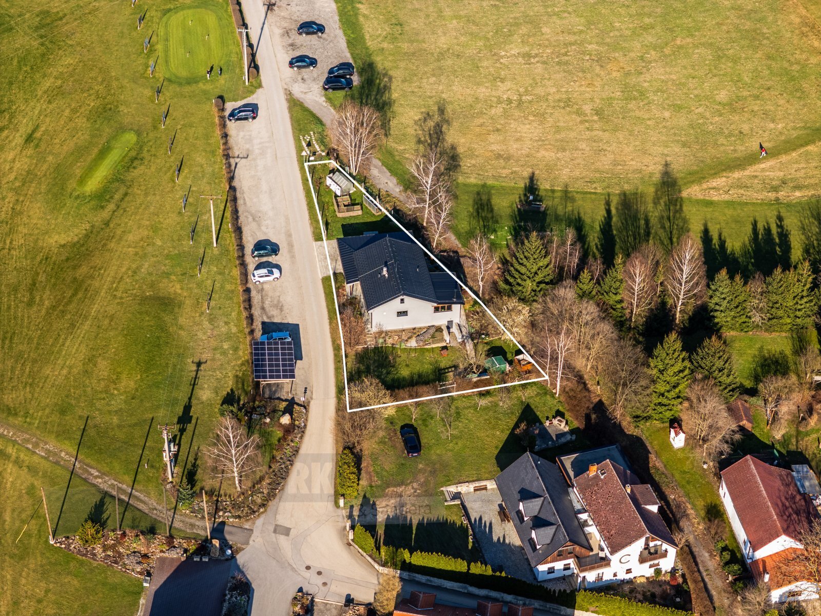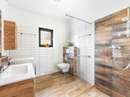 Nabízíme vám novostavbu rodinného domu s dispozicí 3+kk a užitnou plochou 121 m² je situována na pozemku o výměře 801 m² v klidné a velmi vyhledávané lokalitě přímo u resortu Svachovka. Tato výjimečná poloha přináší ideální spojení bydlení v přírodě s pohodlným přístupem ke sportu, relaxaci i kompletní občanské vybavenosti. Dispoziční řešení domu je promyšlené a praktické. Z předsíně vstoupíte do chodby, ze které je přístup do dvou samostatných pokojů, koupelny, šatny, odděleného WC a prostorného obývacího pokoje s kuchyňským koutem a samostatnou spíží. Dominantou obytné části jsou krbová kamna, která vytvářejí příjemnou atmosféru a zároveň slouží jako doplňkový zdroj tepla. Z obývacího prostoru je přímý vstup na zastřešenou terasu o velikosti 19 m² s krásným výhledem do okolní krajiny. Část terasy je zasklená a její součástí je venkovní krb, plně vybavená letní kuchyně a také samostatná toaleta přístupná přímo z terasy – ideální řešení při pobytu venku s rodinou či přáteli. Dům byl postaven z kvalitních materiálů s důrazem na energetickou úspornost, což se pozitivně promítá do nízkých provozních nákladů. Zdrojem vody je vlastní vrtaná studna o hloubce 28 metrů, dešťová voda je svedena do retenční nádrže s přepadem. Odpad je napojen na čistírnu odpadních vod provozovanou sousedním hotelem. Vytápění zajišťuje elektrický kotel napojený na podlahové topení, doplněný krbovou vložkou v obývacím pokoji. Ohřev vody obstarává elektrický bojler umístěný v technické místnosti. Nově instalované solární panely pro ohřev vody dále přispívají ke snížení energetických nákladů. Udržovaná zahrada nabízí skleník, vyvýšené záhony, kompost, ovocné stromky i plechovou konstrukci vhodnou k uskladnění nářadí. Sklep je přístupný z venkovní části domu a je rozdělen na dvě samostatné místnosti sloužící jako praktické skladové prostory. Parkování je možné v garáži nebo pohodlně přímo na vlastním pozemku před domem. Z garáže je zároveň vstup do technické místnosti, kde je umístěn bojler a elektrokotel. Nemovitost se nachází pouhých 5 km od Český Krumlov, s velmi dobrým napojením na Kaplice i České Budějovice. Významným benefitem je také nově vybudovaná dálnice D3, která zajišťuje rychlé spojení směrem na Prahu i do Rakouska. Okolí je obklopeno přírodou a nabízí bohaté možnosti volnočasových aktivit – od golfu a cyklostezek přes turistiku až po relaxaci přímo v místě bydliště. V případě zájmu o bližší informace či domluvení prohlídky nás neváhejte kontaktovat.
