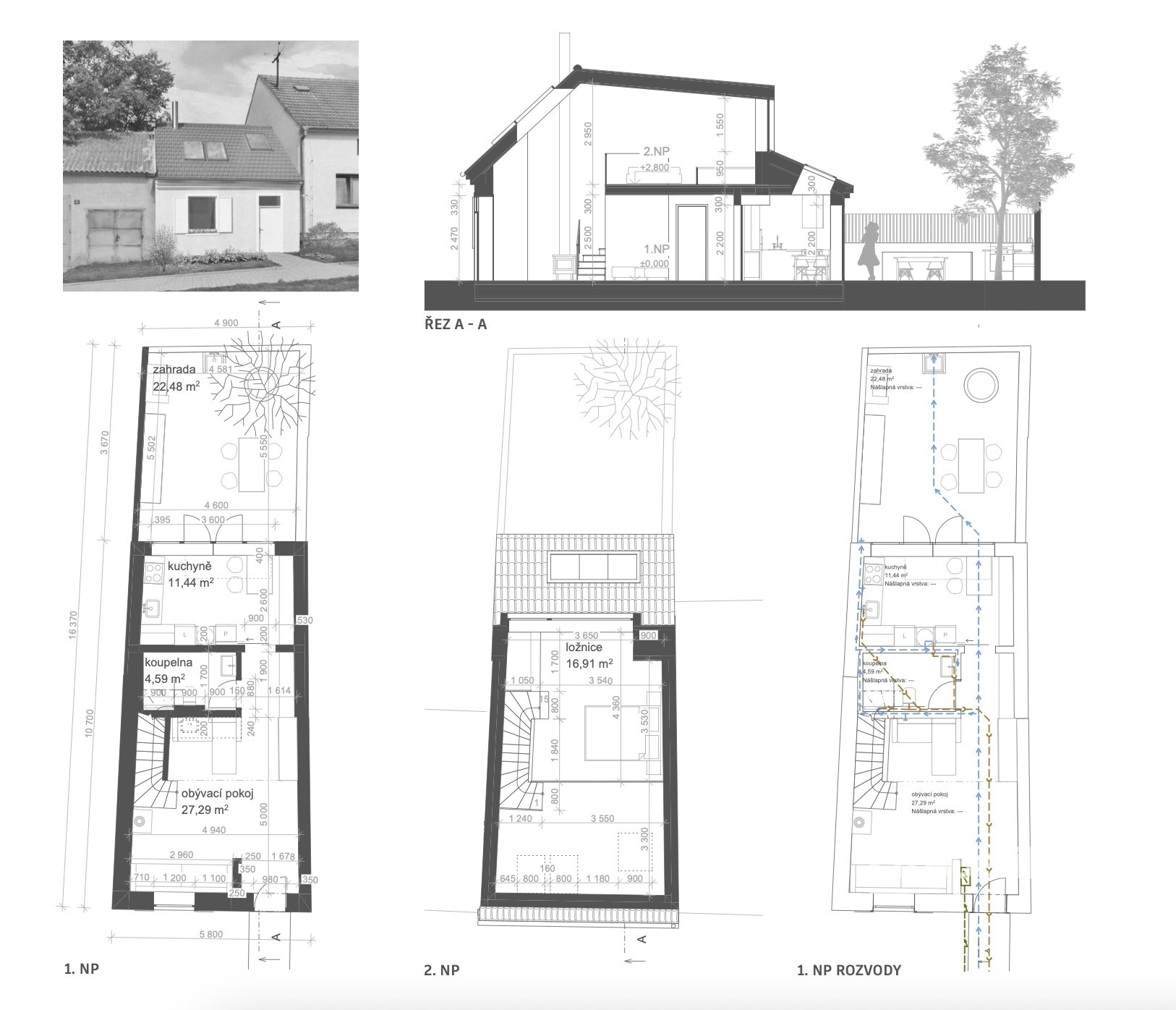 Hledáte dům, kde si můžete vytvořit domov přesně podle svých představ? V Miroslavi nabízíme rodinný dům s velkým potenciálem, ideální pro ty, kteří mají vizi a chtějí bydlet moderně, úsporně a po svém. Součástí prodeje je architektonická studie, která rozšiřuje původní užitnou plochu na 88,40 m² a proměňuje dům v moderní open-space bydlení se zahrádkou. Návrh klade důraz na světlo, funkčnost a propojení interiéru s venkovním prostorem – ideální pro rodinné bydlení i rekreační využití. Velkou výhodou je, že realizace rekonstrukce je navržena tak, aby postačovalo pouze ohlášení stavby, bez nutnosti stavebního povolení. Odhadované náklady na rekonstrukci činí přibližně 1 800 000 Kč. Dům je již napojen na elektřinu, vodovod i kanalizaci, což výrazně zjednodušuje a zrychluje celý proces rekonstrukce. V přiložené galerii naleznete vizualizace a půdorysy, které vám pomohou představit si finální podobu domu po dokončení. Lokalita – Miroslav Miroslav se nachází přibližně 30 minut jízdy od Brna a nabízí kompletní občanskou vybavenost – školu, školku, obchody, restaurace i lékaře. Díky výbornému vlakovému i autobusovému spojení je zajištěn pohodlný dojezd do Brna, Znojma i okolních měst. Klidné prostředí, blízkost vinic a dostatek zeleně dělají z Miroslavi ideální místo pro rodinné bydlení i víkendový dům. Shrnutí nabídky: - užitná plocha po rekonstrukci: 88,40 m² - architektonická studie v ceně - odhadované náklady na rekonstrukci: cca 1,8 mil. Kč - napojení na elektřinu, vodu a kanalizaci - pouze ohlášení stavby, bez nutnosti stavebního povolení - klidná a dobře dostupná lokalita