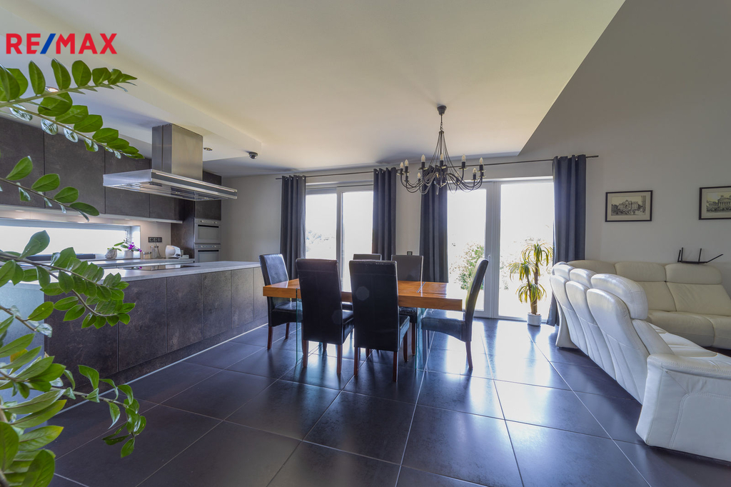 Hledáte moderní, vzdušný a velmi prostorný rodinný dům odpovídající moderním trendům? Tak potom právě pro vás je určena tato nabídka dvougeneračního domu, kde můžete bydlet s dětmi menšími, většími, dospělými, nebo také můžete dopřát samostatný bezbariérový byt třeba vašim rodičům v přízemí tohoto rodinného sídla. Jedná se o novostavbu nacházející se v obci Mistřice, místní část Javorovec. Tato velmi žádaná lokalita v blízkosti Uherského Hradiště nabízí bydlení v nádherné krajině, což oceníte jak při vycházkách po okolí, tak také při výhledech téměř ze všech pokojů, kuchyně, obývací části nebo třeba při romantické koupeli v nadstandardně prostorné vaně jedné ze tří koupelen, které jsou v tomto domě k dispozici. V přízemí domu je samostatná bytová jednotka 1kk včetně koupelny a samostatného wc. Dále je zde prostorná dvougaráž, dílna, sklad na sportovní potřeby a technická místnost, ve které se mimo jiné nachází řídící jednotka fotovoltaické elektrárny umístěné na střeše domu s výkonem 20 kw. Ve druhém a třetím podlaží se nachází opravdu nadstandardně řešený byt 7kk. Při vstupu do tohoto bytu máme hned v prostoru zádveří pracovnu a šatnu, dále se pak otvírá obrovský prostor, který propojuje kuchyň s varným ostrůvkem, jídelnu a obývací pokoj, který je otevřený do galerie do dalšího podlaží. Na tomto patře se dále nachází master bedroom s privátní koupelnou a také samostatná toaleta pro návštěvy. Po vzdušném a světlém schodišti vystoupáme do horního podlaží, kde se nachází soukromá zóna majitelů, kde máme k dispozici krom již zmíněné prostorné koupelny s vanou a sprchovým koutem také další šatnu a 4 pokoje. V tomto podlaží mají téměř všechny pokoje včetně koupelny přes francouzská okna přístup na balkóny, obepínající celou jihozápadní stranu domu. Tento dům je opravdu výjimečný, a to jak svou polohou, dispozicí tak třeba také umístěním na pozemku s ohledem na světové strany. Hned vedle domu vám bude k dispozici sportovně relaxační zóna, která nabízí multifunkční hřiště, odpočinkovou zónu v obecním sadě a navazující dětské hřiště. Když půjdete ještě kousek dále, můžete se okoupat v přehradě, nebo rybařit v jednom z několika rybníků. Toto místo bude ráj rovněž pro kolaře a všechny kteří milují nekonečné procházky. Dle mého soudu se jedná o velmi výhodnou koupi, kdy budoucí majitel si už pouze dodělá venkovní úpravy a fasádu domu dle svých představ. K dokončení fasády, úpravě terénu, nebo realizaci zahrady vám budeme společně s prověřenými dodavateli k dispozici. Nyní pro vás připravujeme energetický průkaz, který by měl odpovídat energetické třídě „B“, mezitím si neváhejte zavolat o bližší informace, případně si domluvit termín nezávazné prohlídky. Zdarma zajistíme výhodné financování nákupu nemovitosti.