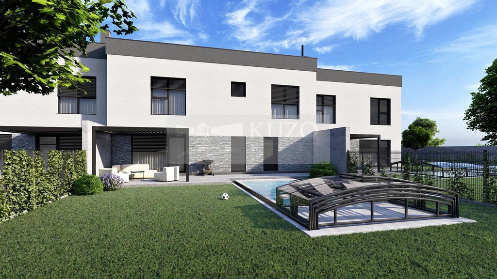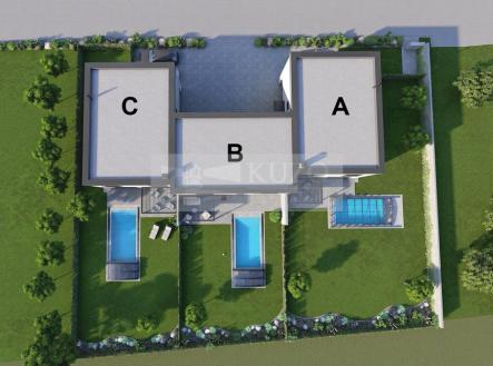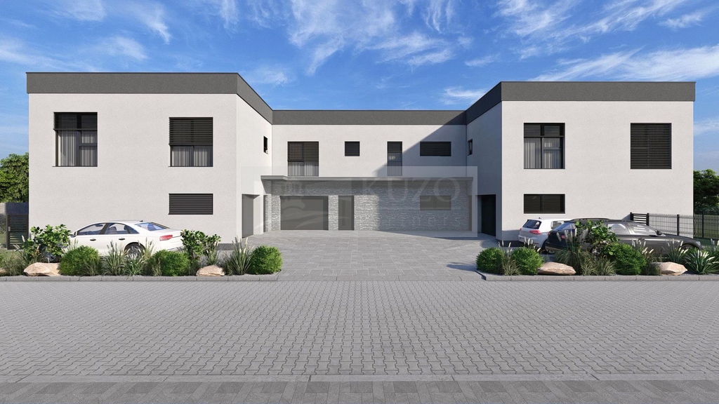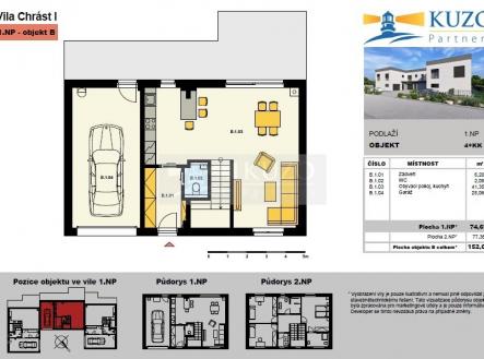 Líbilo by se Vám žít ve městě, a přesto být obklopeni přírodou? Chcete se stát součástí skvěle navrženého projektu, díky kterému máte přírodu doslova pár kroků za domem? V moderní a prakticky řešené vile, najdete jednotku o dispozici 4+kk a komfortních 152 m2 vnitřní užitné plochy ve dvou podlažích. Podlahová plocha jednotky je 160 m2. Součástí jednotky je vlastní garáž a k tomu je před vilou další privátní parkovací stání. V zadní části domu si budete užívat privátní rovinatou zahradu o výměře 286 m2, která navazuje na venkovní terasu. Celková výměra pozemku, který náleží k této jednotce je 440 m2. V přízemí se nachází prostorný obývací pokoj s kuchyňským koutem, který má celkem 41 m2. Dále je zde samostatná toaleta, předsíň, garáž s technickým zázemím. Po schodišti do prvního patra, jsou tři samostatné ložnice, druhá koupelna se sprchovým koutem a toaletou a vstup do oddělené prádelny. V hlavní ložnici je navíc další sprchový kout a toaleta. Podlahy všech obytných místností jsou vinylové, v koupelnách a WC je kvalitní keramická dlažba. V garáži je betonová stěrka. Stěny vnitřních omítek jsou štukové, v koupelnách a na WC je keramický obklad. Stropy obytných místností, koupelen a WC mají sádrokartonové podhledy. Po celém domě je podlahové topení, které obsluhuje kondenzační plynový kotel. Všechna okna s izolačním trojsklem mají přípravu na předokenní žaluzie. Garáž se zavírá zateplenými sekčními vraty na dálkové ovládání. Víme, že maličkosti dělají velké věci. Právě proto, jsme do jednotky vestavěli komín, abyste si dokonalost obývací části mohli v již v podzimních měsících zpříjemnit u krbu. Mimo vybrané materiály z našeho klientského centra, máte možnost dům na přání vybavit nadstandartními prvky, které si u našich dodavatelů vyberete. Kostru stavby domu tvoří železobetonová nosná konstrukce. Obvodové výplně a konstrukce příček jsou provedeny z pórobetonových tvárnic. Fasáda je zateplená kontaktním zateplovacím systémem z polystyrenu a na jejím povrchu je tenkovrstvá minerální omítka. Plochou zateplenou střechu opatřenou hydroizolací, kryje zásyp ze štěrkového kačírku. Energetická náročnost budovy třídy B – velmi úsporná, přičemž celková dodaná energie 92 kWh/(m2.rok), řadí jednotku do kategorie A. Jde skutečně o výjimečné bydlení, prakticky na konci slepé ulice, v krásné příměstské lokalitě Chrást u Mladé Boleslavi. Vysoká občanská vybavenost města Mladá Boleslav a výhody příměstské dopravy, splňují vysoké nároky zájemců o rodinné bydlení. V neposlední řadě určitě stojí za zmínku skvělá dostupnost hlavního města Prahy, kde jste v centru pohodlnou dálniční jízdou po D10, za necelou hodinu jízdy autem. Černý Most stíháte za pouhých 20 minut.