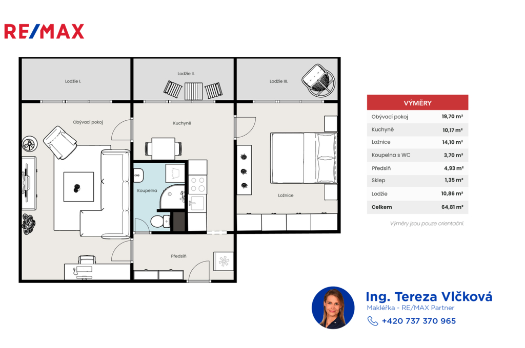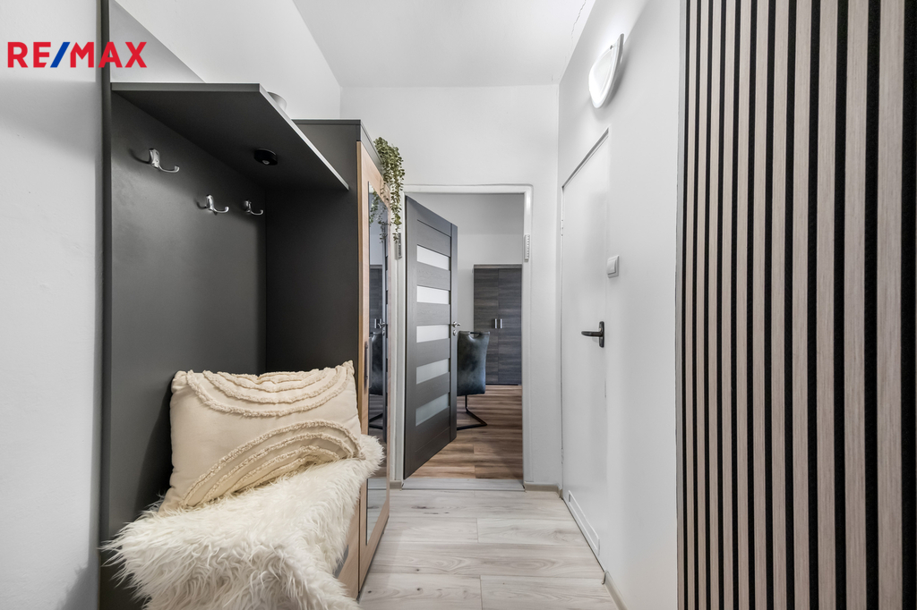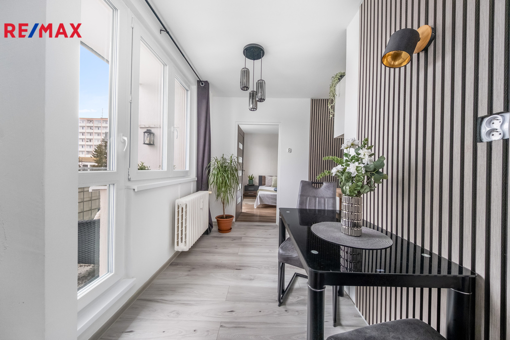 Hledáte světlý byt s promyšlenou dispozicí, klidným výhledem a neobvykle velkým „bonusem“ v podobě tří lodžií? V Mladé Boleslavi, v ulici U Stadionu, pro Vás mám velmi zajímavou nabídku bytu 2+1 v osobním vlastnictví po zdařilé částečné rekonstrukci. Byt má užitnou plochu 52,74 m² a nachází se ve 2. nadzemním podlaží z osmi v panelovém domě s výtahem. K bytu náleží sklepní kóje o výměře 1,35 m² a celkem tři lodžie o celkové ploše 10,86 m². Celková výměra všech prostor k využití je tedy 64,95 m². Dispozičně je byt řešen velmi chytře: nabízí dva samostatné pokoje, každý s vlastním vstupem na lodžii. Z obou pokojů je přístup do kuchyně s jídelnou, odkud se vychází na třetí lodžii. Jeden z pokojů má dvoje dveře, což dává zajímavý potenciál pro úpravu na spací kout a oddělený obývací prostor. Byt tak může být plnohodnotně využitelný i pro rodinu s dětmi. Zároveň je vhodný jako investice, včetně možnosti sdíleného pronájmu, kdy mají obyvatelé díky dvěma samostatným pokojům dostatek soukromí. Byt se prodává částečně vybaven; vybavení je zahrnuto v kupní ceně. Všechna okna směřují do klidné zóny za domem a jsou orientována na jihovýchod, takže byt působí světle a útulně. Před několika měsíci proběhla výměna oken a balkonových dveří za nová plastová. Byt prošel částečnou rekonstrukcí: jsou zde nové podlahové krytiny v celém bytě, nová kuchyňská linka s novými spotřebiči, nové interiérové dveře, sádrokartonové podhledy v kuchyni a ložnici a nové jádro ze sádrokartonu. Aktuálně v domě probíhá zasklení lodžií. Koupelna je propojena s WC a nabízí masážní sprchový kout a nové umyvadlo. Elektroinstalace je provedena lokálně v koupelně a kuchyňském koutě (nejedná se o kompletně novou elektroinstalaci v celém bytě). Vytápění i ohřev vody jsou centrální. Plyn je do bytu přiveden, aktuálně se nevyužívá – v kuchyni je elektrická varná deska a trouba. Dům má bezbariérový vstup zadním vchodem. V roce 2015 proběhla revitalizace (nová fasáda, vstupní dveře, schránky, výtah, stoupačky) a v roce 2017 bylo realizováno nové zábradlí lodžií. Parkování není vyhrazené, je možné dle dostupných ploch města v okolí domu. Měsíční náklady: zálohy včetně fondu oprav činí 6 178 Kč/měsíc (fond oprav pouhých 863,- Kč), elektřina cca 950 Kč/měsíc a plyn cca 260 Kč/měsíc. Prohlídky proběhnou dle domluvy v týdnu od 9. 2. V případě více vážných zájemců si vlastník vyhrazuje právo vybrat kupujícího s nejlepší nabídkou. S vyřízením úvěru za výhodných podmínek Vám pomůže můj hypoteční specialista. Přijďte se podívat osobně. Těším se na Vás na prohlídce. Rezervujte si svůj termín. Ing. Tereza Vlčková | realitní makléřka