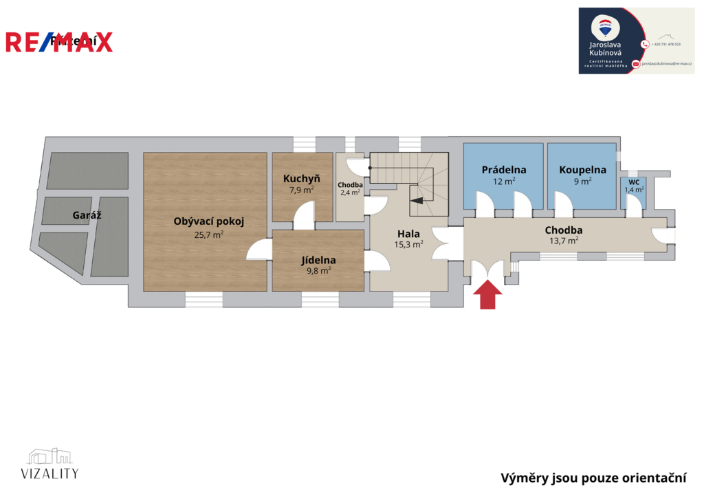 Nabízím k prodeji prostorný rodinný dům 9+2 se zahradou v oblíbené lokalitě Podlázky u Mladé Boleslavi. Hlavní předností je poloha – bydlíte v klidné, zelené části u řeky, ale všechny služby Mladé Boleslavi máte v dosahu: školy a školky, obchody, zdravotní péči, sportoviště i kulturu. Do centra města je to rychlý dojezd, stejně tak na hlavní výjezdové tahy, takže každodenní logistika je maximálně pohodlná. Dům stojí na souboru pozemků o celkové výměře cca 2 023 m² – zastavěná plocha a nádvoří cca 210 m², navazující zahrada cca 546 m² a trvalý travní porost cca 1 267 m². Původně přízemní cca 2+1 z roku cca 1870 se v průběhu let rozšířil: v roce cca 1939 přístavba a nástavba 1. patra, v letech cca 1969–1972 proběhla modernizace rozvodů, koupelny a vytápění, v roce cca 1970 byla vybudována garáž (cca 23 m²) a v roce cca 1998 vzniklo obytné podkroví. Dnes nabízí přibližně cca 220 m² obytné plochy v dispozici cca 9+2 – v přízemí se nachází vstupní hala, obývací pokoj, kuchyň s jídelnou a zázemí; v patře tři ložnice a koupelna; podkroví doplňují další pokoje, obývací část a druhá kuchyně se spíží. Dům má smíšené zdivo (kámen/cihla/tvárnice), betonové schodiště, v přízemí převládají betonové podlahy, v patrech dřevěné. Technicky je dům napojen na obecní vodovod a kanalizaci. Vytápění zajišťují dva plynové kotle s možností přitápění krbem nebo tepelným čerpadlem vzduch-vzduch, ohřev vody plynovým kotlem; vaření probíhá na plynové sporáku a varná deska. Interiér v části odpovídá starší úpravě, počítejte proto s rekonstrukcí, jejíž rozsah si můžete přizpůsobit svým představám. Zahrada plynule navazuje na louku, která poskytuje soukromí a dostatek prostoru pro odpočinek, dětské hry, zahradničení nebo hobby. Hledáte vícegenerační bydlení, velkorysý dům pro početnou rodinu, nebo prostor, kde zkombinujete bydlení a práci? Podlázky u Mladé Boleslavi nabízejí přesně to – klid domova i plnou vybavenost velkého města na dosah. Ráda vám poskytnu doplňující informace a domluvíme si osobní prohlídku.