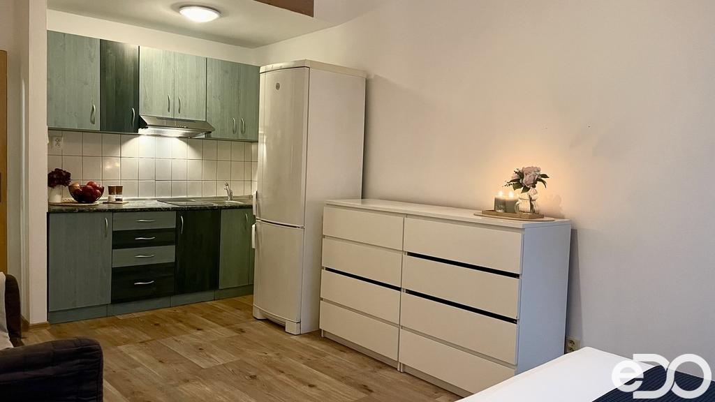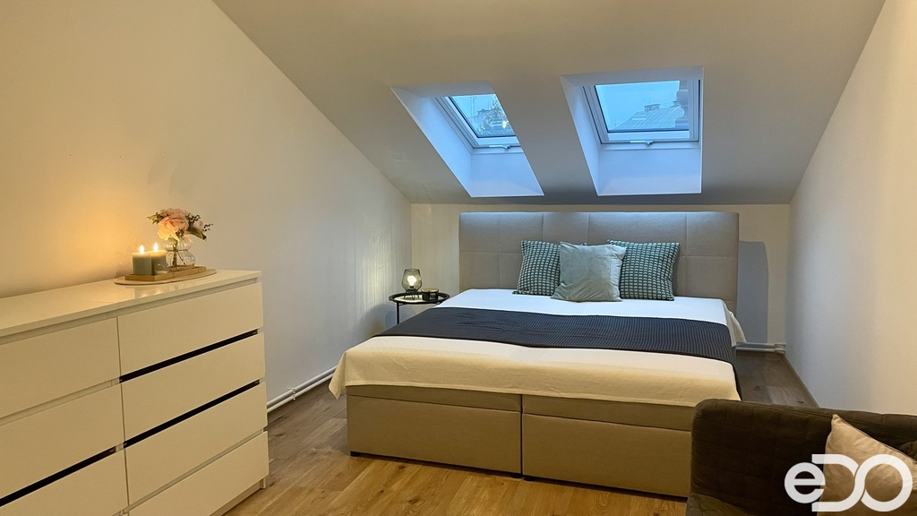 Nabízíme k pronájmu byt 1+kk s půdní mezonetovou vestavbou, situovaný přímo v centru města, přesto v klidné a příjemné lokalitě. Byt je zařízený a disponuje půdním prostorem, který lze využít ke spaní nebo jako úložný prostor. Vestavba je přístupná výsuvným schodištěm. Součástí bytu je koupelna se sprchovým koutem, toaletou a pračkou. Kuchyňský kout je vybavený dvouvařičem a ledničkou. Dále je zde manželská postel, komody a malý gauč. Veškerá občanská vybavenost je v bezprostředním okolí – zastávka MHD, kavárny, restaurace i obchody jsou v docházkové vzdálenosti. Byt je vhodný maximálně pro 1-2 osoby. Finanční podmínky: Nájemné: 12.000 Kč / měsíc Zalohy na energie: 3.000 kc/ 1osoba Jistina (kauce): 24.000 Kč Provize RK: 15.000 Kč včetně DPH BYT JE JIŽ V ÚSTNÍ REZERVACI.