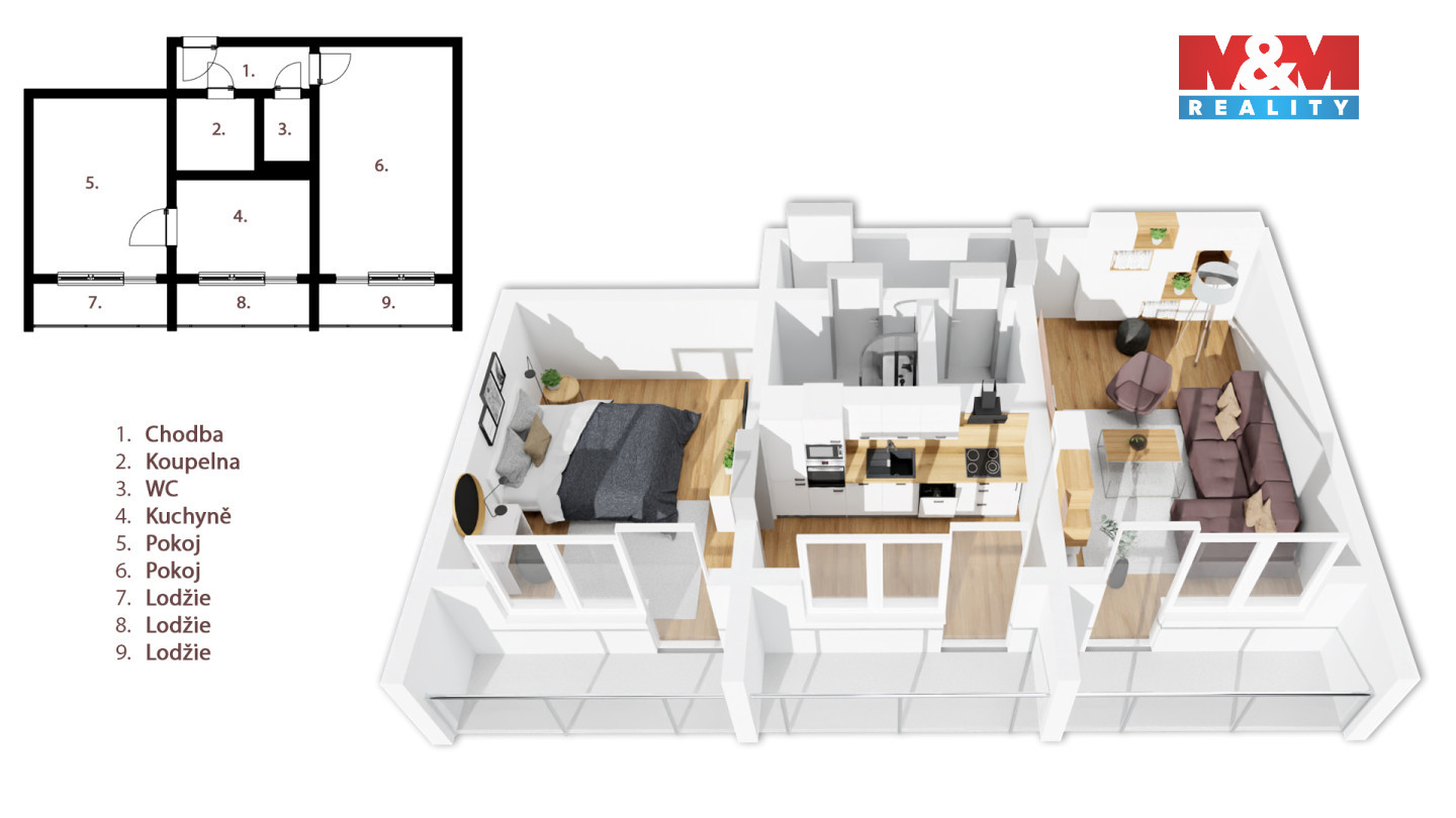 Pronájem bytu, 2+1, 54 m²