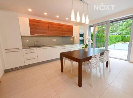 Dovoluji si Vám nabídnout k pronájmu moderní krajní řadový rodinný dům o dispozici 5+kk a celkově užitné ploše 160 m² , který se nachází v klidné části Mladé Boleslavi, ve Svojsíkově ulici, v těsné blízkosti lesoparku Radouč . Tento částečně vybavený dům je ideální volbou pro klienty, kteří hledají komfortní bydlení s dostatkem prostoru, soukromí a moderního zázemí. Dispozice domu: V přízemí se nachází vstupní zádveří s vestavěnou skříní, vstup do garáže (s úložným prostorem), koupelna se sprchovým koutem a toaletou. Dominantou přízemí je prostorný a světlý obývací pokoj s přímým vstupem na terasu a zahradu . Součástí přední části je moderní kuchyňská linka s vestavěnými elektrospotřebiči a jídelním stolem se čtyřmi židlemi. Dále v přízemí naleznete praktickou špíz. V 1. patře domu se nachází čtyři světlé ložnice, dále koupelna s WC ( vybavená vanou) . Podlahové krytiny tvoří plovoucí podlahy, v koupelnách a na toaletách je položena keramická dlažba. Vybavení a technické parametry • vytápění domu zajišťuje tepelné čerpadlo (v celém domě je podlahové vytápění ) • venkovní rolety • připojení na PCO (pult centrální ochrany) , • optická internetová přípojka od společnosti DRAGON • garáž s úložným prostorem a vraty na dálkové ovládání • zahrada s dvěma terasami a zavlažovacím systémem • venkovní zastřešený bazénem s nočním osvětlením a protiproudem. Platební podmínky: • měsíční nájemné je ve výši 50.000,-Kč a zahrnuje zálohy na vodu, elektřinu, topení, pravidelný úklid domu 1× za 14 dní, připojení na PCO, optický internet a svoz komunálního odpadu ( 1x týdně) • vratná kauce (peněžní jistota): 50.000,- Kč , • provize realitní kanceláře za zprostředkování pronájmu činí 30.000,- Kč . Nabízený pronájem je ihned k nastěhování a nabízí vysoký standard bydlení, dostatek úložného prostoru, soukromí a příjemné prostředí v blízkosti přírody. Tento pronájem je ideální pro rodiny či klienty, kteří hledají moderní, prostorný a energeticky úsporný dům v klidné části města, s výbornou dostupností do centra Mladé Boleslavi i na dálnici D10 směrem na Prahu. Pro komunikaci uvádějte evidenční číslo zakázky N114547.