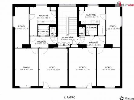 Exkluzivní prodej samostatně stojícího cihlového bytového domu v klidné lokalitě Nové Zámky, obec Mladeč, okres Olomouc. Dům má dvě nadzemní podlaží, je plně podsklepený a disponuje sedlovou střechou. Kapacita objektu zahrnuje čtyři bytové jednotky s dispozicí 3+1 v původním stavu, čtyřmi samostatně vestavěnými garážemi, které jsou umístěny v suterénu budovy s přímým vjezdem z příjezdové komunikace. Dále jsou zde skladové a technické prostory. V přízemním podlaží se nacházejí sklepy náležící k bytům, sušárna, prádelna a modernizovaná technická místnost. V roce 2022 prošla nemovitost klíčovými úpravami, které zajišťují její efektivní a spolehlivý provoz. Byly vybudovány zcela nové přípojky vody a plynu, čímž byla zajištěna nezávislost na okolních areálech. Moderní systém vytápění a ohřev vody zajišťují dva nové plynové kondenzační kotle doplněné o velkoobjemové zásobníky teplé užitkové vody. Elektroinstalace a kanalizace svedená do ČOV jsou původní a však plně provozuschopné. K bytovému domu náleží zahrada a manipulační plocha o celkové výměře 1 323 m². Objekt je osazen plastovými okny s izolačním dvojsklem a novými vstupními dveřmi. Lokalita Nové Zámky nabízí jedinečný klid v přírodním prostředí v těsném sousedství CHKO Litovelské Pomoraví a zároveň zajišťuje výbornou dostupnost do Litovle a Olomouce. Nemovitost je dlouhodobě obsazena spolehlivými nájemníky a představuje tak stabilní investiční příležitost s okamžitým výnosem. Ev. číslo: 654733.