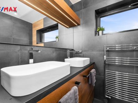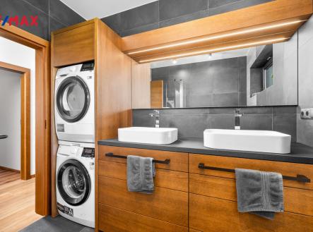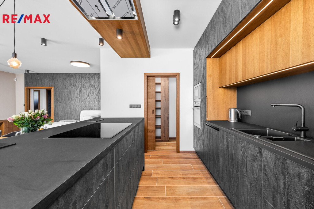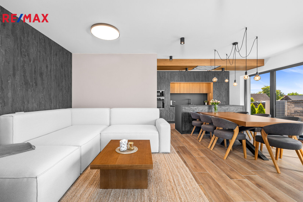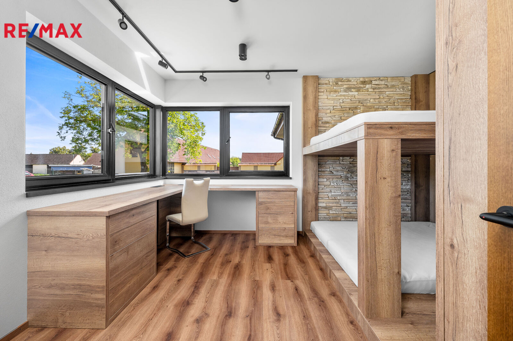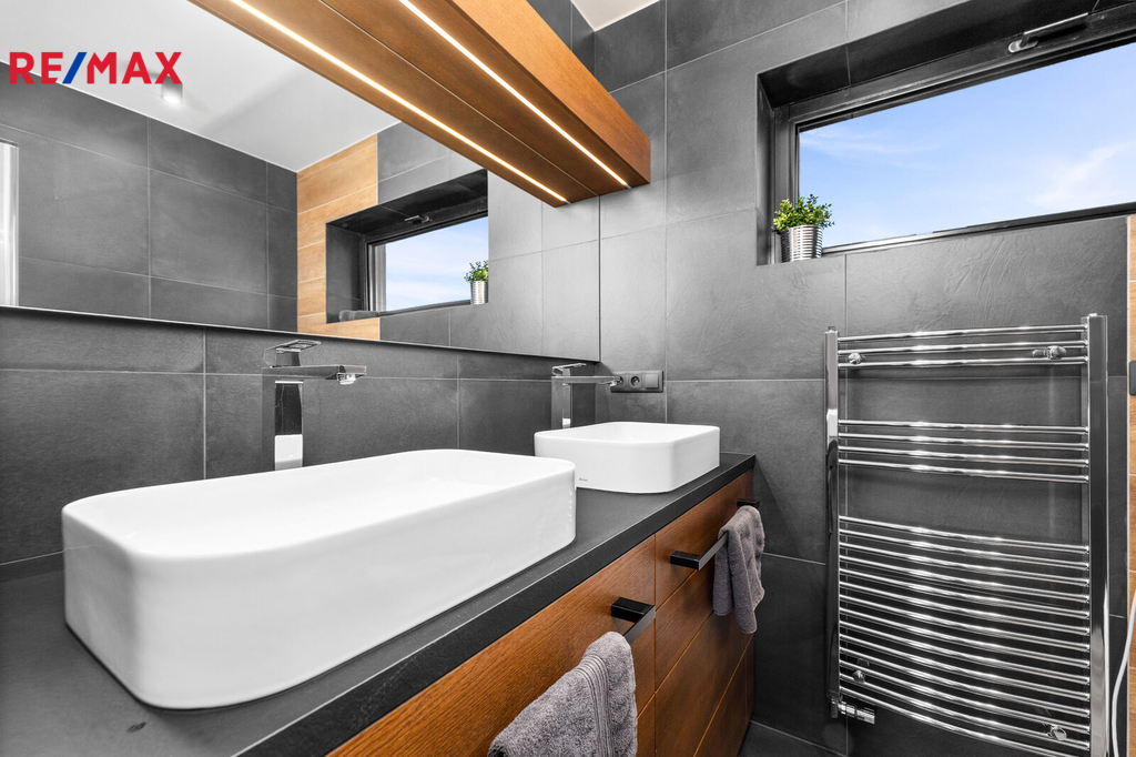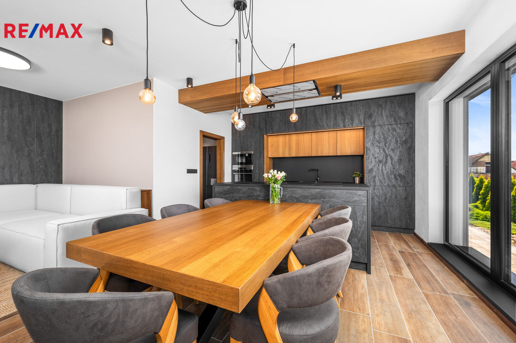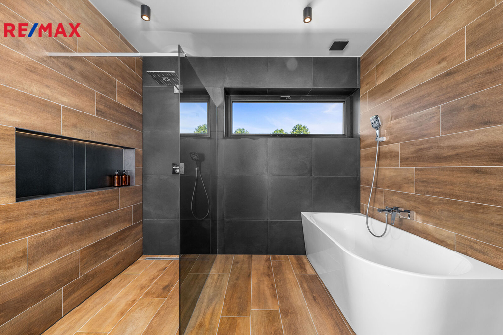 Nabízíme k prodeji nadstandardně provedenou, zatím neobývanou novostavbu přízemního rodinného domu v obci Mladošovice, vzdálené 9 km od Třeboně a 6,5 km z Borovan. Součástí pozemku o celkové výměře 912 m2 je samostatný, nepodsklepený rodinný dům typu bungalov se samostatnou garáží se skladem o celkové zastavěné ploše 192 m2. Prostor mezi garáží a domem je zastřešen a vznikl zde tak prostor pro parkování dalšího vozu. Součástí nemovitosti je také zastřešená pergola umístěná v zadní části zahrady a krytý venkovní bazén navazující na vydlážděnou terasu obklopující celý dům. Obytná část je dispozičně řešena jako 3+kk o podlahové ploše 128,4 m2 a sestává se z chodby, prostorného obývacího pokoje s krbovými kamny, kuchyňským koutem a spíží, pokoje, ložnice se šatnou, koupelny s vanou a sprchovým koutem, samostatného WC, druhé koupelny se sprchovým koutem, s WC a prostorem na pračku se sušičkou. Součástí je také technická místnost, z níž je vstup stahovacím schodištěm do podkroví, kde je ve středové části půdy připraven prostor pro uskladnění věcí, popř. by zde bylo možné zřídit jeden další pokoj. Dispoziční řešení domu s rozměry jednotlivých místností části najdete na přiloženém půdorysu. Nemovitost se prodává včetně nadstandardního, velice kvalitního vybavení: kuchyňská linka se spotřebiči, na míru zhotovený dřevěný nábytek (vestavné šatní skříně v chodbě, úložný systém ve spíži a šatně, koupelnový nábytek, předsíňová stěna, patrová postel vč. stolu a skříně v pokoji, skříně v garáži aj.). V domě zůstane i další vybavení, které je vidět na fotografiích včetně osvětlení. Na oknech v obývacím pokoji a ložnici jsou předokenní žaluzie, podlahové krytiny tvoří lepený vinyl a dlažba, dům má zabezpečovací systém. Postaven je z cihelných bloků Porotherm 44 cm, vybaven kvalitními dřevěnými dveřmi i okny (trojsklo). Vytápění je řešené ústředními, podlahovými rozvody, zdrojem je tepelné čerpadlo vzduch-voda. V obývacím pokoji jsou krbová kamna, která jsou obsluhována z technické místnosti. Ohřev vody zajišťuje 300 l kombinovaný bojler (tepelné čerpadlo a elektřina). Objekt je napojený na obecní přípojku vodovodního řadu, kanalizace je řešena vlastní čistírnou odpadních vod s přepadem do kanalizace. Dešťová voda je svedena do dvou retenčních nádrží, ze kterých je následně řešena závlaha zahrady. Pozemek je kompletně oplocen, přístup je po zpevněné cestě a vjezd bránou na el. pohon. Zahrada je osázená okrasnými dřevinami a součástí je zastřešený bazén (6 x 3,8 x 1,4 m). Tento rodinný dům nebyl primárně stavěn na prodej, byl kladen důraz na kvalitní provedení i vybavení, což je jeho hlavní předností. Další výhodou je umístění na úplném okraji zástavby s výhledem do otevřené krajiny. V obci je obchod, mateřská škola, pohostinství. Komplexní občanská vybavenost je pak v Borovanech nebo v Třeboni. Mladošovice jsou dostupné pravidelným autobusovým spojem (Č. Budějovice – Borovany – Třeboň) .