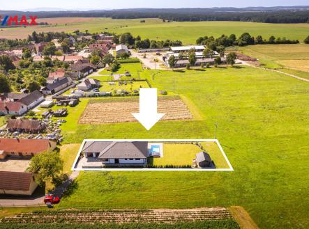 Mladošovice u Borovan – novostavba RD s garáží, bazénem a pozemkem 912 m2
