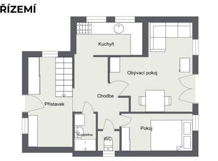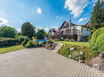 Nabízíme k prodeji prostornou chatu o celkové užitné ploše 98 m², která se nachází v klidné části Mnichovic – Jidaška, jen 25 minut jízdy od Prahy. Nemovitost stojí v mírném svahu s krásným výhledem do údolí a je obklopená zelení, která zajišťuje naprosté soukromí a klid. Lokalita patří k nejvyhledávanějším oblastem v okolí Prahy díky ideální kombinaci přírody, dobré dostupnosti a přátelské atmosféry. Chata je z větší části zděná (cihlová), doplněná o kvalitní přístavbu, je zateplená a osazená plastovými okny, což zajišťuje příjemné klima i nízké provozní náklady po celý rok. Dispozičně je řešena jako 3+1 s obytným podkrovím a nabízí plnohodnotný komfort pro celoroční užívání. V přízemí se nachází prostorný obývací pokoj s krbovými kamny, které vytvářejí útulnou atmosféru a zároveň zajišťují efektivní vytápění celého domu. Z obývací části se vstupuje přímo na velkou terasu s výhledem do krajiny, ideální pro ranní kávu, večerní posezení i letní grilování. Na terasu navazuje udržovaná zahrada s dostatkem prostoru pro odpočinek i bazén, který je součástí pozemku. Kuchyň je prakticky propojena s obytným prostorem a působí svěže a funkčně. V podkroví se nachází ložnice s dostatkem úložného prostoru, kterou lze využít i jako pracovnu nebo dětský pokoj. V suterénu je sklep a k dispozici je i kůlna pro uskladnění nářadí. Na pozemku je vybudováno parkovací stání a vjezd na pozemek zajišťuje elektrická brána s dálkovým ovládáním, což podtrhuje komfort i bezpečnost celého objektu. Nemovitost je napojena na elektřinu 230 V, pitná voda je z vlastní studny, odpady jsou svedeny do jímky. Díky zateplení, moderním oknům a kvalitní konstrukci je chata plně vhodná pro celoroční bydlení. Zahrada je rovinatá, slunná a nabízí soukromí i nádherný výhled do údolí, který dává celé nemovitosti jedinečný charakter. Okolí tvoří rozptýlená zástavba rodinných domů a rekreačních objektů, místo působí velmi klidně a příjemně. V Mnichovicích je kompletní občanská vybavenost – škola, školka, obchody, restaurace i vlakové spojení do Prahy, Říčan a Benešova.