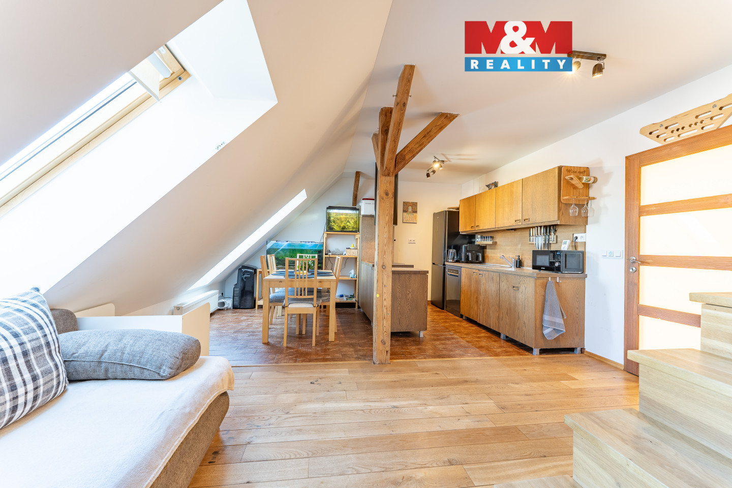 Nabízíme Vám k prodeji moderní mezonetový byt 3+kk s možností rozšíření na 4+kk v centru Mnichova Hradiště. Byt se nachází v 5. podlaží cihlového domu a disponuje podlahovou plochou 80 m², užitnou plochou 65 m² a terasou o výměře 12 m². Dispozice bytu je velmi praktická. Ve spodní části se nachází prostorná chodba, koupelna, obytná místnost s kuchyňským koutem a další samostatný pokoj. V horním patře je místnost se střešním oknem a úložným prostorem a dále otevřený prostor s možností vytvoření příčky, čímž lze byt snadno upravit na dispozici 4+kk. Z tohoto prostoru je vstup na terasu s krásným výhledem. Velkou výhodou je samotná poloha bytu – v docházkové vzdálenosti se nachází centrum města s kompletní občanskou vybaveností, jako jsou obchody, školy, lékaři i restaurace. Byt je ihned k dispozici. Nechte se okouzlit tímto moderním a atypickým bydlením a kontaktujte nás pro více informací nebo sjednání prohlídky.