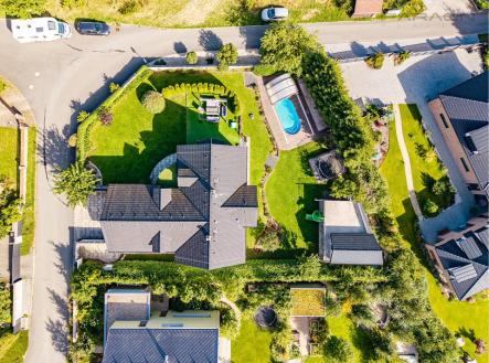 Prodej rodinné vily (346 m2) s bazénem, (pozemek 1180 m2), Praha západ - Mníšek pod Brdy - Na Vyhlíd
