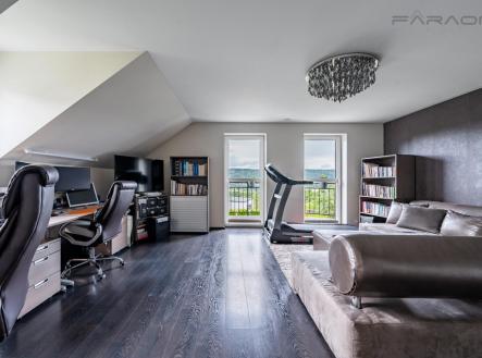 Prodej dvoupodlažní, zděné a zateplené rodinné vily o výrazně prostorné užitné ploše 346 m², postavenou v roce 2012 na krásném, pečlivě upraveném a oploceném pozemku (1180m2) v mimořádně okouzlující, krásné krajině brdských lesů s panoramatickými výhledy do zalesněné krajiny. Zastávka autobusu je vzdálena pouze několik minut chůze od domu, což zajišťuje komfortní dostupnost, přesto je rezidenční lokalita, kde je vila umístěná velmi tichá a klidná. Výjimečnost domu podtrhuje kombinace moderního designu, komfortu a klidného prostředí. Součástí pozemku je vyhřívaný bazén o rozměrech 6x3 metry a samostatný letní domek pro děti, který lze využít i jako letní kuchyň nebo domek pro hosty. Nemovitost je vkomponována do krásné přírodní scenérie tak, že se podařilo harmonicky spojit klid a soukromí, umocněné výhledem do krásného okolí s přímým vstupem do lesa v bezprostřední blízkosti od domu. Pro své krásné lesnaté okolí, kompletní infrastrukturou a pohodlnou dostupností do jihozápadní části Prahy je Mníšek pod Brdy oblíbenou a vyhledávanou rezidenční adresou. Atraktivní, dynamicky se rozvíjející město Mníšek pod Brdy disponuje kompletní občanskou vybaveností, snadnou dostupností a přímým napojením MHD na metro, včetně multifunkčního wellness centra s tenisovými kurty. Dům zahrnuje dvě podlaží a půdní prostor s celkovým počtem 7 pokojů s kuchyní plus pracovnu. K dispozici jsou prostorné terasy a balkón, které nabízí příjemné venkovní posezení s výhledem. Nemovitost disponuje garáží a dalšími parkovacími místy na pozemku. Vybavení: Vytápění domu zajišťuje zcela nové moderní tepelné čerpadlo a plynový kotel s podlahovým vytápěním v přízemí. Okna jsou plastová s hliníkovými rámy a elektrickými žaluziemi. V domě jsou tři prostorné vestavěné šatny a dvě koupelny vybavené luxusními prvky, včetně sauny, hydromasážní vany a vyhřívací lavice ve sprše. Exteriér doplňuje vyhřívaný a zastřešený bazén o rozměrech 6x3 metry a dětský domek o velikosti cca 25 m². Dům je připojený na městský vodovod, kanalizaci. Tato zajímavá příležitost koupě uživatelsky komfortní a nadčasové a prostorově velkorysé nemovitosti, která tvoří svým prostorovým potenciálem, stavebním provedením i polohou, ideální podmínky pro rodinné bydlení v přírodě s aktivním využitím volného času, v atraktivní lokalitě Prahy západ, Brd s ideálním spojením do centra metropole. (dopravní spojení vlakem 10min chůze od vlakového nádraží se spojením na Hlavní nádraží, bus s přímým napojením na metro, autem po Strakonické cca 25min na Smíchov). Kompletní občanská vybavenost mateřské školky, základní školy, obchody včetně supermarketů, lékařské služby, pošta, kavárny a restaurace. Užitná plocha 364 m2, 90 m2 terasa, zastavěná plocha 204 m2, pozemek 1 180 m2.