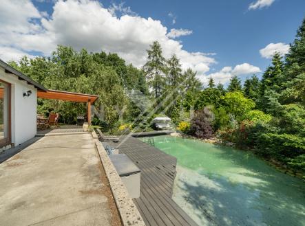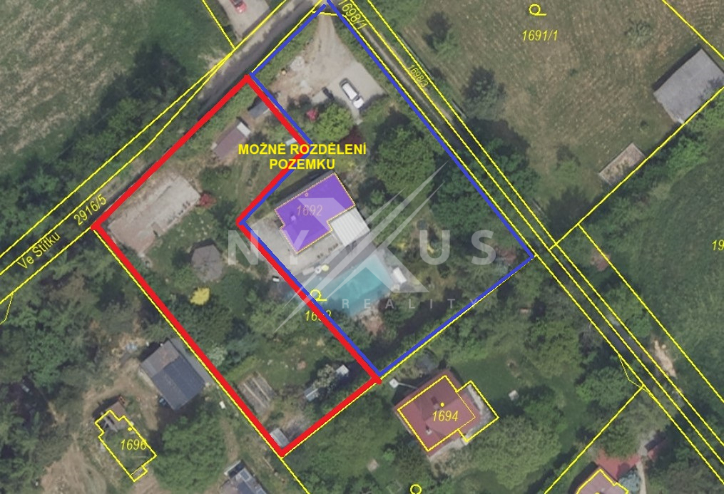 Ráda bych vám nabídla rozlehlý stavební pozemek o výměře 2 505 m², který je zasazen do klidné lokality Mníšku pod Brdy, ulice Ve Štítku, v těsné blízkosti Prahy. Na pozemku se nachází menší zděná stavba. Vzhledem k rozlehlosti pozemku, lze pozemek rozdělit na dva samostatné pozemky - povoleno stavebním úřadem. Majitel by zajistil kompletní rozdělení na katastru. Část A - výměra 1081 m², součástí je základová deska. Dostupné připojení na sítě - elektřina, obecní vodovod, možnost septiku/jímky. Případně obecní kanalizace ve vzdálenosti 1 km. Část B - výměra 1424 m², součástí je menší zděná stavba a jezírko. Sítě připojeno - obecní vodovod, odpad řešen septikem, elektřina - připojeno. Specifika pozemku: - stavební pozemek - hlavní využití: bydlení v rodinných a řadových domech - přípustné využití: drobné podnikatelské aktivity, drobné komerční a drobná výroba, ubytovací služby, parkovací služby, veřejná prostranství, dětská hřiště, izolační zeleň - samostatně stojící domy do 2 bytových jednotek - dvojdům - 1+p: tedy přízemí + podkroví až do výšky 8,5 m - koeficient zastavitelnosti - 25% - koeficient zpevněných ploch - 25% - koeficient zeleně - 50% - minimální velikost parcely pro stavbu - 1000 m² - 3 parkovací stání Pozemek nabízí vzhledem ke vzrostlé vegetaci a umístění na okraji obce naprosté soukromí, kde si můžete užít nekonečné chvíle klidu. Výhodou je zděná chata a k relaxaci vybízí také krásný altán s vířivkou. Dále vlastní jezírko s filtrací a ohřevem na koupání, které je připojené na rozlehlou terasu 200 m² s pergolou, kde je příjemné dát si ranní kávu a užívat si klid tohoto kouzelného místa. Zahrada je osazena vzrostlými tújemi, okrasnými a ovocnými stromy. K dispozici je i projekt na rozšíření současné stavby. Na pozemku se nachází ještě další základová deska 100 m², kde byla zamýšlena výstavba garáží. K pozemku vede zpevněná obecní komunikace a je zde zaveden obecní vodovod, odpad je řešen septikem. Specifika zděného domu na pozemku: - 4+1 + sklep - zastavěná plocha 76 m² - suterén - jedna ložnice a sklep - podlaží - 2 ložnice, obývací pokoj, šatna, kuchyně, koupelna - kompletní rekonstrukce - rozvody elektřiny, nové podlahy - vinyl, dlažba, nová koupelna, kuchyně. Dům i střecha zateplena. Nová dřevěná eurookna. - vytápění elektrické + krb Přijďte se sami přesvědčit o výjimečnosti tohoto místa. Ráda vás zde provedu.