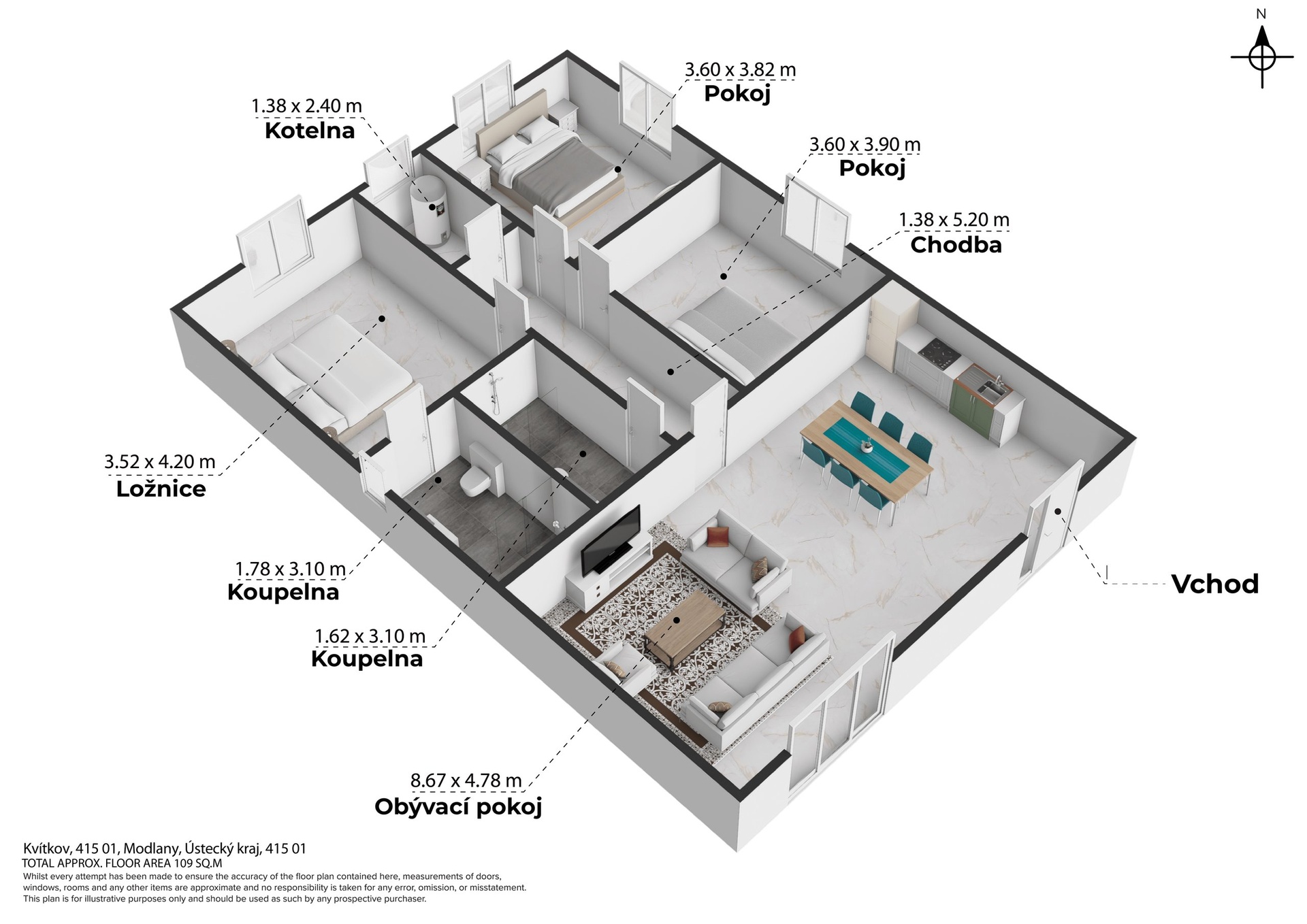 S radostí vám představím tento nádherný nový rodinný dům, který je ideálním místem pro klidné a pohodové bydlení. Nachází se v malebné obci Kvítkov a nabízí komfortní dispozici 4+kk s prostornou zahradou, jež zve k odpočinku a rodinným radovánkám. Dům je moderní novostavbou s pečlivě promyšleným interiérem, ve kterém dominují vysoce lesklá podlahová dlažba, jež dodává prostoru eleganci a lehkost. Vytápění zajišťuje elektrický kotel a podlahové topení se postará o příjemné teplo v celé domácnosti. K ohřevu vody slouží praktický elektrický bojler. Dům je napojen na jímku s čističkou ( ČOV ), což zaručuje ekologický a ekonomický provoz. Dvě koupelny s moderními sprchovými kouty nabízí komfort, přičemž jedna z nich je situována přímo u ložnice, což zajišťuje maximální soukromí a pohodlí. Rovinatá zahrada je skvělým místem pro venkovní odpočinek či zábavu, s dostatkem prostoru na vybudování terasy nebo posezení, kde si můžete vychutnat večerní západ slunce, dětské hry nebo zahradničení. Tento domov je snem pro ty, kteří hledají harmonii mezi moderním komfortem a přírodou, a s jeho klidnou lokalitou v Kvítkově nabízí opravdu ideální místo pro vaši rodinu. Pokud Vás tato nabídka zaujala, zajistěte si osobní prohlídku u makléře zakázky.