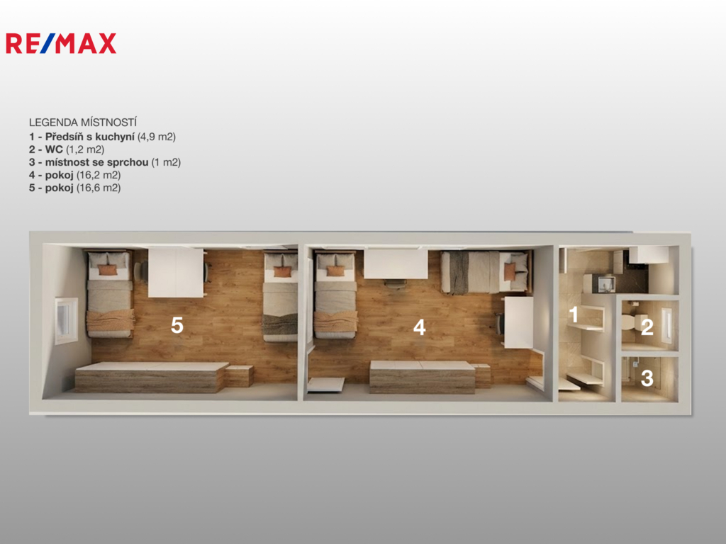 Hledáte studentské bydlení, kde máte klid na studium, vlastní prostor a jasnou cenu bez překvapení? Nabízím k pronájmu byt o dispozici 2+1 a užitné ploše 40 m², určený pro čtyři studentky, které chtějí funkční a plně vybavené zázemí během studia. Byt se nachází v jednopodlažní stavbě, kde nejsou další byty. Díky tomu nabízí nadstandardní míru soukromí a klid, bez sousedů nad hlavou. Pro studenty, kteří potřebují nerušený prostor na učení i odpočinek, je to výrazná výhoda. Dispozičně byt tvoří dva pokoje, z nichž jeden je průchozí. Každý pokoj je určen pro dvě osoby a je vybaven tak, aby měla každá své vlastní místo. K dispozici jsou nové postele, velké psací stoly se šuplíky, uzavíratelné police nad postelí, prostorné skříně a vlastní mini lednice v každém pokoji. Samozřejmostí je samostatný elektrický přímotop v každém pokoji, který umožňuje nastavit teplotu podle potřeby. Součástí bytu je menší, ale plně vybavená kuchyňka s elektrickým vařičem, mikrovlnnou troubou, rychlovarnou konvicí a základním nádobím. WiFi připojení je k dispozici a je již zahrnuto v ceně. Modřice jsou vhodné pro ty, kteří chtějí mít základní služby i volnočasové možnosti v rozumné dostupnosti. V místě se nacházejí menší obchody s potravinami, restaurace i lékárna. Díky dobrému vlakovému a autobusovému spojení je centrum Brna snadno dostupné i bez auta, k dispozici je také tramvajová linka č. 2, která vede přímo do města. Příjemným bonusem lokality jsou klidné procházkové trasy a stezky v okolí Modřic, včetně tras podél řeky Svratky, vhodné na procházky, běh nebo odpočinek po studiu. Celkové měsíční nájemné činí 24 000 Kč a zahrnuje veškeré služby, energie, vytápění i internetové připojení. Nájemné je rozpočítáno na 6 000 Kč na osobu a byt je možné pronajmout výhradně při plné obsazenosti. Vratná jistota činí 24 000 Kč, provize realitní kanceláře je ve výši jednoho měsíčního nájmu + DPH. Jedná se o nebytový prostor zkolaudovaný jako kanceláře. K nastěhování ihned. V případě zájmu mě neváhejte kontaktovat telefonicky nebo emailem, ráda zodpovím jakýkoliv dotaz.