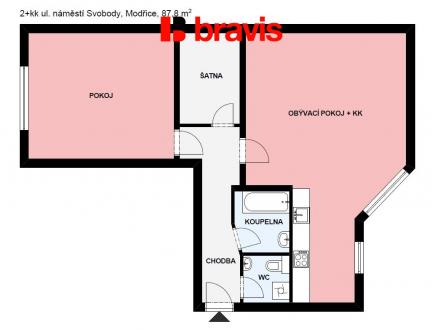 Nabízíme k pronájmu prostorný byt o dispozici 2+kk s celkovou užitnou plochou 87,8 m², situovaného ve 2. nadzemním podlaží cihlového domu z roku 2008 na ulici náměstí Svobody v žádané lokalitě Modřice, Brno - venkov, jen 3 km od Olympie Brno. Tento byt vyniká především svým nadstandardním prostorem a promyšleným dispozičním řešením, které uspokojí i náročnější zájemce. Byt je částečně zařízený. Prostorný obývací pokoj s kuchyňským koutem je ideálním místem pro rodinné setkávání i relaxaci po náročném dni. Kuchyňská linka je vybavena všemi vestavěnými spotřebiči (myčka, indukční varná deska, trouba, digestoř, mikrovlnná trouba, lednice s mrazákem). Samostatná ložnice poskytuje dostatek soukromí a díky samostatnému vstupu je vhodná jak pro mladý pár, tak i pro jednotlivce vyhledávající klidné zázemí. V bytě se nachází rovněž šatna s vestavěnými skříněmi, která nabízí opravdu velkorysé množství úložného prostoru. Koupelna je vybavena rohovou vanou a samostatnou toaletou. Vstupní chodba je prostorná, což oceníte především při příchodu domů nebo návštěvách. Byt má vlastní plynový kotel, což zajišťuje efektivní vytápění i ohřev teplé vody. K bytu náleží parkovací stání ve vnitrobloku domu – žádné starosti s hledáním parkování přímo v centru obce. V přízemí domu je k dispozici společná kolárna, kterou mohou využívat všichni obyvatelé. Lokalita nabízí perfektní občanskou vybavenost, v pěší vzdálenosti najdete restaurace, kavárny, obchody, lékárnu, centrum města i zastávku autobusu. Pro rodiny s dětmi jistě potěší dvě dětská hřiště vzdálená 500 a 700 metrů od domu – ideální pro bezpečné hraní a trávení volného času. Byt je volný ihned, připravený k okamžitému nastěhování. Zajistíme jednorázový nebo pravidelný úklid naší uklidovou firmou Bravis Cleaning.