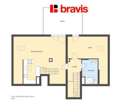 Prodej moderního bytu 2+kk s galerií, terasou, garáží, park. stáním, ul. Višňová, Moravany u Brna,