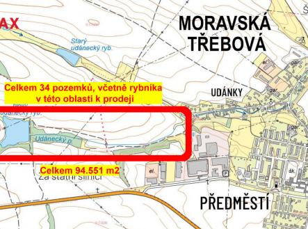Exkluzivně nabízíme k prodeji rybník u Moravské Třebové. Parcely rybníka a navazující parcely se nachází v katastrálním území Boršov u Moravské Třebové a v katastrálním území Moravská Třebová. Rybník leží na toku Udáneckého potoka. Soubor pozemků k prodeji obsahuje parcely: - rybník - 26.133 m2 - koryto toku - 531 m2 - trvalý travní porost - 47.444 m2 - ostatní plocha - 13.397 m2 - orná půda - 1.686 m2 - lesní pozemek - 5.360 m2 Pro vážné zájemce máme k dispozici následující dokumentaci - vodohospodářskou mapu, situačky, profil hráze, sdružený objekt, základní hydrologické údaje, manipulační řád, pasport, odběr a zkouška sedimentu. V případě zájmu o více informací kontaktuje makléře nabídky.