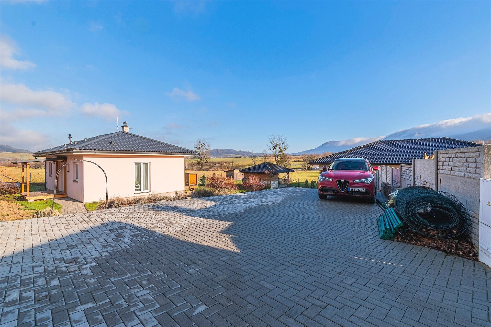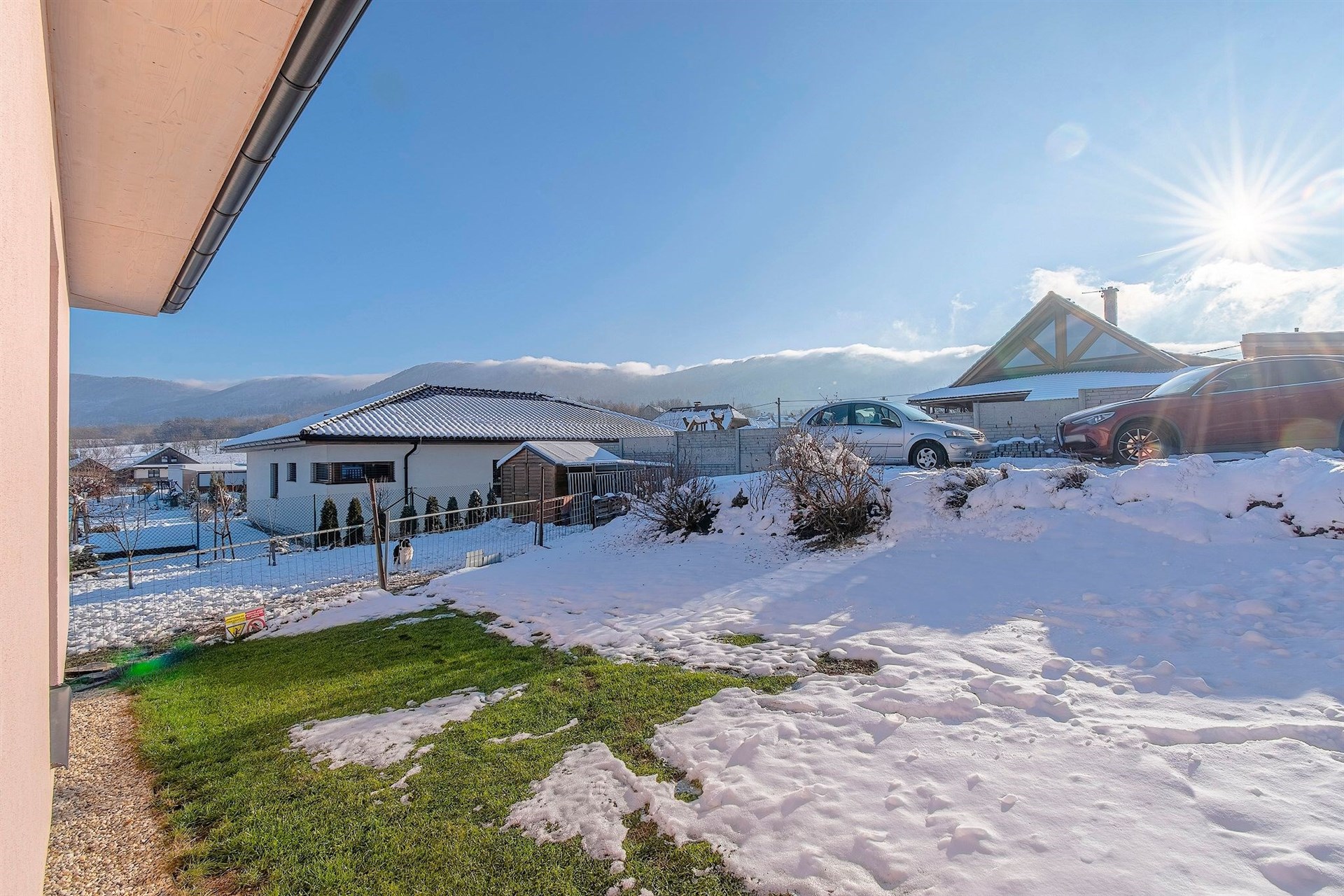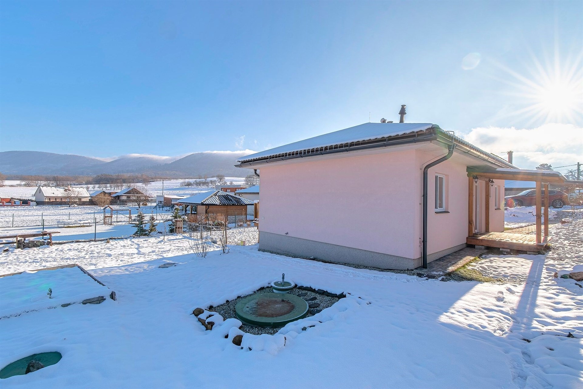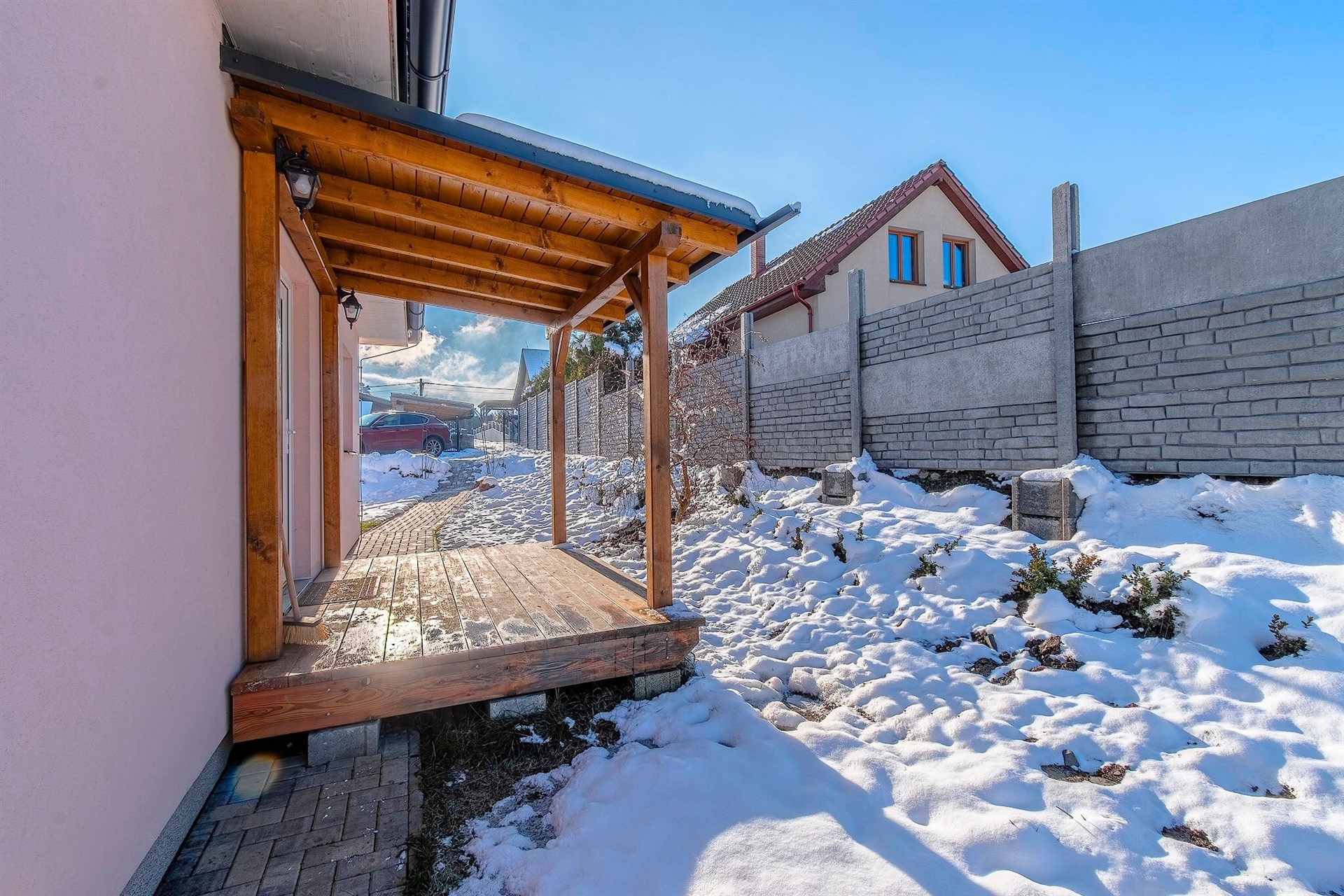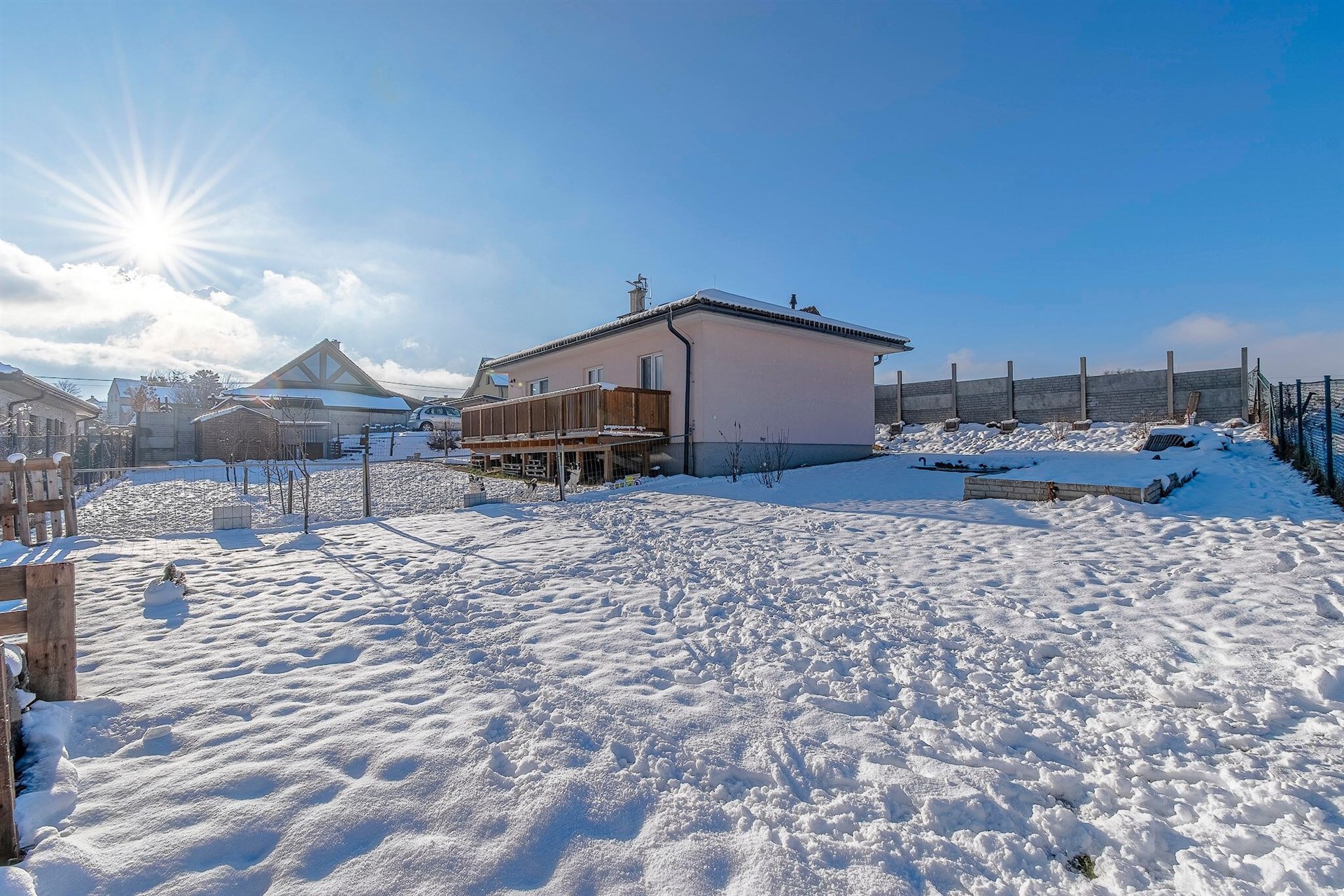 Novostavba velmi pěkného a útulného RD s vnitřní dispozicí 3+kk, který se nachází na krásném místě na okraji obce Mořkov, kousíček města Nový Jičín. Přímo z prostorné terasy domu, případně ze zahrady máte krásný výhled na Beskydské vrcholy Huštýn, Hodorf, Krátká a hlavně na blízký Velký Javorník (6,6 km vzdušnou čarou), kam přes zmíněné vrcholy vede krásná turistická hřebenová cesta E3. Dům je dřevostavbou systému NovaTOP, je koncipován jako rostoucí, možnost rozšíření v případě potřeby. Okna jsou plastová trojskla, podlahy dřevo + dlažby. Střecha valbová, krytina plechová, stropy zateplené. Vytápění je ústřední podlahové (systém Rehau) ve všech místnostech, ohřev vody do podlahy i pro ÚV zajišťuje plynový kondenzační kotel zn. Baxi. Dále je možné vytápění tuhými palivy v obýváku se nachází krbová kamna, která bez problémů vytopí za okamžik celý dům. Dům je energeticky úsporný, energ. náročnost budovy třídy "B", fasáda se zateplením systému STEICO Protect (20cm), což je vodoodpudivá, difúzně otevřená izolační deska pro robustní konstrukce. Kompletní stavební dokumentace domu je k dispozici a bude předána s domem novému majiteli. Dům je napojený na inženýrské sítě plynovod, vodovod obecní, elektřina, odpad čistička odpadních vod (ČOV) na pozemku, dešťová kanalizace do retenční nádrže 3 m3. Dispozice domu: zádveří chodba obytný prostor / obývák kuchyně spižírna pokoj 2 (ložnice) pokoj 3 (dětský pokoj) koupelna samostatné WC šatna. Z každého ze tří pokojů je samostatný výstup na dřevěnou terasu. Pozemek je oplocený, výměra pozemků celkem 901 m2 (tj. 741 m2 zahrada a zpevněné plochy, dále 74m2 zastavěná plocha a přístupová cesta 86 m2). Mořkov je obec v Moravskoslezském kraji v okrese Nový Jičín, ležící jihovýchodně od Nového Jičína, žije zde přibližně 2 400 obyvatel, nachází se severně od Moravskoslezských Beskyd na úbočí vrchu Huštýna a svažuje se až k říčce Jičínce tekoucí na jejím severním okraji. Prochází jí silnice II/483 a také železniční trať číslo 323. V obci je dobrá občanská vybavenost (pošta, úřad, školka i škola, Sokol, hřiště, hasiči, atp.). Dopravní dostupnost Nový Jičín vzdálený 7km, Kopřivnice a Štramberk 11 km, Valašské Meziříčí 13km, Frenštát p. R. 13km, Frýdek Místek vzdálený 35km. Do obce je vlakové i autobusové spojení, dostupná dálnice D1 a D48, cyklostezky. V případě více zájemců si prodávající vyhrazuje právo vybrat kupujícího dle zajímavější nabídky. Velmi vřele doporučuji, volné od léta 2026. Prohlídky provádíme pouze s vážnými zájemci.