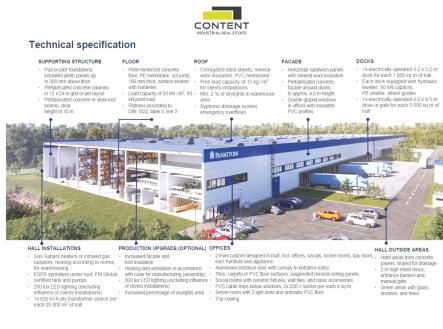 Pronájem skladu, výrobních prostor 4500 m²Most. V zastoupení majitele a bez provize nabízíme novostavbu skladu nebo výrobních prostor o celkové výměře 9300 m², v nově vybudovaném průmyslovém parku v blízkosti Mostu: - stavební povolení vydáno, k dispozici do 12 měsíců - vstupy v úrovni vozovky, hydraulické rampy - vysoko-zátěžové, bezprašné podlahy s minimální nosností 5 t/m² - světlá výška stropu až 12 m - kancelářské a sociální zázemí na míru - příjezd pro TIR samozřejmostí a dostatečné manipulační i parkovací plochy - další úpravy možné, dle požadavku - lze dělit na menší celky, informujte se Cena nájmu je individuální, dle konkrétních požadavků klienta. Fotografie hotových budov jsou pouze ilustrativní. Pro více informací nás kontaktujte.