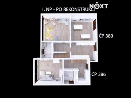 Tento dům není jen jeden, ale vlastně dva, jelikož disponuje 2 čísly popisnými. Žádný úchvatný stav tady opravdu nečekejte a za pár korun to do obyvatelného stavu určitě nedostanete, ale je tady obrovský potenciál. K domu byla zpracována studie na přestavbu ke krátkodobému pronájmu, a pokud byste chtěli celý projekt realizovat, tak jej zpracovatel studie dotáhne i ke zdárnému stavebnímu povolení. Samozřejmě když si domy koupíte, tak si s domy můžete provést co chcete, ale já vám teď nastíním to, co zde bylo v plánu a pro lepší představu vám pomohou půdorysy budoucího stavu v prezentaci. Jak jsem zmínil na začátku, tak dům má dvě čísla popisné a díky tomu může vzniknout jeden samostatný apartmán, který bude dispozičně řešen jako 3kk se sociálním zařízením v 1.NP i 2.NP a disponoval by kapacitou 4 lůžek s přistýlkami pro děti. Tohle bylo zamýšleno s prvním číslem popisným a v druhém se toho dá vymýšlet podstatně více. Ještě než budu pokračovat, tak je třeba zmínit, že ve studii se počítá se změnou vstupu do domu od cesty. Vezmu to trošku netradičně od sklepa... Sklep má bezproblémovou stojnou výšku a díky tomu v něm může vzniknout famózní party místnost s barem, kuchyňkou, posezením, sociálním zařízením a hlavně menší welness zázemí. V 1.NP je zamýšleno další sociální zařízení, prostorná kuchyně s jídelnou a další pokoj s celoprosklenou stěnou směrem do zahrady. V této místnosti byla plánována dětská hernička pro nejmenší, ale může to být i částečná kombinace s obývacím pokojem, anebo jen obývací pokoj. V 2.NP je samozřejmě opět sociální zázemí a 5 pokojů s kapacitou 12 lůžek plus případné přistýlky pro děti. Na fotkách můžete vidět taky starou zříceninu nějaké hospodářské budovy. Zde bylo v plánu zachovat kamenné obvodové stěny a vytvořit krásné venkovní posezení s grilem a třeba i vířivkou. Samozřejmě bylo plánováno zhotovit i venkovní dětské hřiště. No a teď si už jen představte, jak je to hotové a jak dobře se něco takového pronajímá početnějším skupinám s dětmi. Přeci jen v nedaleké Dolní Lomné je Babyhouse, který je velice vyhledávaný, pořád obsazený a tohle by bylo velice podobné. Záměr je to nádherný, ale samozřejmě vše můžete pojmout úplně jinak. Fantazii se meze nekladou. Zavolejte mi, domluvte si prohlídku a půjdeme se na to mrknout. Zajištění nejvýhodnějšího financování je pro nás samozřejmostí. Pro komunikaci uvádějte evidenční číslo zakázky N116357.