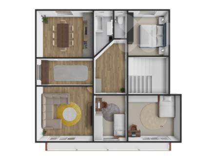 Dámy a pánové, mám pro Vás rodinný dům o dispozici 5+1, který se nachází pouhých 10 minut pěší chůze od centra obce. Místo nabízí pohodlné bydlení s dobrou dostupností. Dům má dvě nadzemní podlaží. V přízemí se nachází garáž, technická místnost, prádelna a jedna ložnice. V horním podlaží je hlavní obytná část o dispozici 4+1, která poskytuje dostatek prostoru pro rodinné bydlení. Dům je z části zateplený a má plastová okna. Na zahradě se nachází také zděná hospodářská budova vhodná pro skladování či dílnu a dřevěný altán s krbem. Tento dům představuje zajímavou příležitost pro ty, kteří hledají praktické a flexibilní bydlení. Při vhodných úpravách je možné nemovitost upravit i na dvougenerační dům. Vidíme se na osobní prohlídce.