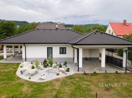 ledáte domov, který je připraven k okamžitému nastěhování? Nemovitost, kde už takzvaně nemusíte hnout ani prstem a je zařízená i okrasná zahrada kolem dom u? Nabízíme Vám k pronájmu novostavbu o dispozici 4+kk, užitnou plochou 109 m2, dokončenou koncem roku 2O23. U domu je kryté parkovací stání o ploše 42 m2, kde pohodlně zaparkují dvě auta. Dům nabízí obývací pokoj propojený s jídelním a kuchyňským prostorem a výstupem na terasu o výměře 30,36 m2, dále pak 3 samostatné pokoje, technickou místnost, samostatné WC a koupelna spojená s toaletou. Dům je již plně zařízen, včetně veškerého nábytku a elektrospotřebičů. Tento zděný dům je vytápěn podlahovým topením, což zajišťuje příjemný komfort. V současnosti je hotová i příprava na instalaci tepelného čerpadla, jako zdroje pro vytápění, případně ohřev vody, což v budoucnu bude příjemným benefitem v podobě úsporného vytápění. Zahrada čítající 793 m2 je tak akorát velká pro dětské hry, či drobnou zahradní činnost ale ne zas moc velká pro náročnou údržbu. Navíc kompletní terénní úpravy včetně osázení okrasných dřevin, oplocení, brána a zpevněné plochy již probíhají a budou dokončeny v brzké době. A teď něco málo k lokalitě. Dům se nachází v atraktivní lokalitě s blízkými lyžařskými areály, turistickými trasami a bohatou občanskou vybaveností. Skvělá dostupnost do okolních měst a přírody dělá z této nabídky ideální příležitost pro každého, kdo hledá klid i dobrodružství. Cena nájemného činí 35 000 Kč/měsíčně. K této částce je nutné počítat navíc poplatky za distribuci elektrické energie, vodné a stočné a internet. Vratná kauce činí 70 000 Kč Provize RK činí 35 000 Kč vč. DPH Pokud Vás nabídka zaujala, neváhejte mne kontaktovat. Ráda Vám zodpovím případné dotazy a domluvíme si případnou prohlídku.