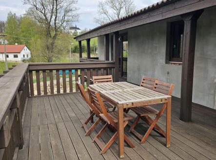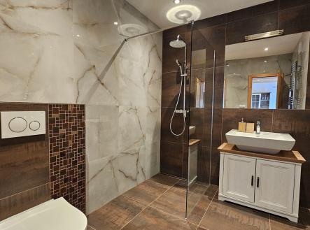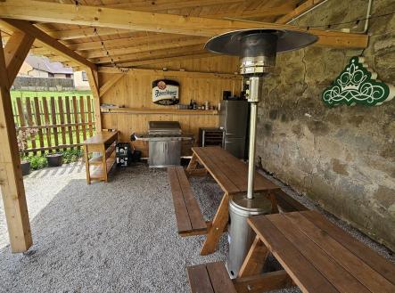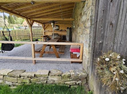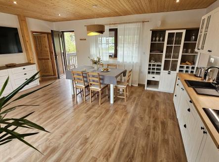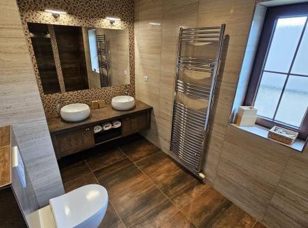Život v klidné obci mezi lesy, loukami a rybníky v malebné vsi Dobrá Voda u Telče, si můžete přijít nezávazně vyzkoušet, a to každou sobotu v poledne na Den otevřených dveří. Objevíte zde nový dům po kolaudaci k bydlení i k investici, úžasný nejen jako svatební místo či apartmánový dům, uprostřed slunné zahrady o ploše 2.800m2. Z oken se zahledíte na kostelík sv. Jáchyma nad obcí, kde si novomanželé říkají své ANO. Dům skýtá zajímavý potenciál ve využití. Vzhledem k jeho dispozici, velikosti rovinatého pozemku s parkováním a poloze na okraji obce. Aktuální dispozice 8 pokojů, z toho tři velké apartmány s kuchyňským koutem a 3 luxusní soc. zařízení, celk. podlahová plocha domu 360m2, může být vzhledem k 5 samostatným vstupům do domu různě využita např: - k rozdělení na 3 samostatné bytové jednotky k bydlení či rekreaci, pro rodinu či k pronájmu - k provozu sálu k tanci, józe, hudbě či tvoření (66m2) s přilehlou kuchyní a jídelnou a k ubytování účastníků v 7 stávajících velkých pokojích nebo po rozdělení i ve více samostatných pokojích - konání svateb s výhledem na kostelík, školení atd. - velký společenský sál 66m2 v přízemí, venkovní posezení na stávající pergole v zahradě + využití zahrady a stodoly + ubytování hostů, parkování i 10 aut. Novostavba domu spolu s dvorem a stodolou tvoří parcelu typu zastavěná plocha a nádvoří. Před domem byla zahájena stavba vyhřívaného skleníku, která by využívala teplo ze systému fotovoltaických panelů, se kterými je uvažováno v tech. přípravě ohřevu vody ze soustavy ústředního topení. Jako další zdroj tepla je využíván krb s výměníkem. Celý pozemek je nově oplocen. V zahradě nová krytá masivní pergola s venk. kuchyní, pípou a grilem. Je k dispozici rozvod 220/380V, obecní vodovod i vlastní studna, přípojka plynu je na hranici pozemku, vlastní čistička odpadních vod. Dispozice: v přízemí se nachází velký obytný prostor (či sál) 66m2 s 2 francouzskými dveřmi s navazující kuchyní s kuch. sestavou písmene U s barem, americkou lednicí a vest. spotřebiči (el. trouba, myčka), vlevo nás chodba vede k toaletě s pračkou a sušičkou, ke koupelně s vanou a toaletou (6m2), ke schodišti do 2.NP nebo do bezbariérového pokoje s francouzskými dveřmi na zahradu, který navazuje na šatnu (možnou budoucí kuchyň 3.apartmánu). Vpravo za obývacím pokojem je chodba se schodištěm do 2.NP a vstupem a dále další bezbariérový pokoj (24m2) s oknem do dvora. Celk. plocha přízemí 156m2. 2.NP má 2 samostatné vstupy z venkovní terasy, i ze spodního patra, a je členěna na 2 samostatné jednotky: - 2+kk (52m2 s luxusní koupelnou 6m2), z pokoje francouzské dveře na terasu 8m2 - 3+kk, z čehož činí apartmán 44m2 se zlatým štukem, výstupem na terasu 27m2 a 2 ložnicemi a koupelnou (8m2) s oknem. Podlah. plocha podkroví 203m2, z toho terasy 35m2. V domě byly použity poctivé materiály (zdivo 45cm), dřevěný krov s pálenou krytinou, nadstandartní keramické obklady přízemního prostoru a všech sociálních zařízení, dřevěné masivní stropy, okna i dveře. Neváhejte s prohlídkou. Obec se nachází při městysi Mrákotín, který leží 5km západně od Telče, 30km od Jihlavy, a nabízí veškerou občanskou vybavenost vč. MŠ a ZŠ. Kilometr jižním směrem od Mrákotína pak leží Dobrá voda s kostelíkem sv. Jáchyma z roku 1682. Obec je proslavena od poč. 17.st. Jáchymovými lázněmi, které užívaly místní vody s obsahem cínu a síry ke koupelím proti mrtvici aj. Z mnoha oken domu a ze zahrady máme v každé denní době jedinečný výhled nejen na kostelík, ale také na okolní přilehlá panoramata kopců, lesů, luk a rybníků Českomoravské vrchoviny. Obec je obsluhována autobusovou linkou mezi Telčí a Dačicemi, je napojena na sítě elektřiny, plynu i vodovodu. Poloha vybízí k procházkám, relaxaci, koupání aj. Nedaleká Telč, památka UNESCO, se svým pohádkovým náměstím a zámkem, je bonusem, který jistě dobře znáte. Cena: 9,470 mil Kč vč. provize a advokátních služeb, domem lze ručit na vaši hypotéku. PENB B.