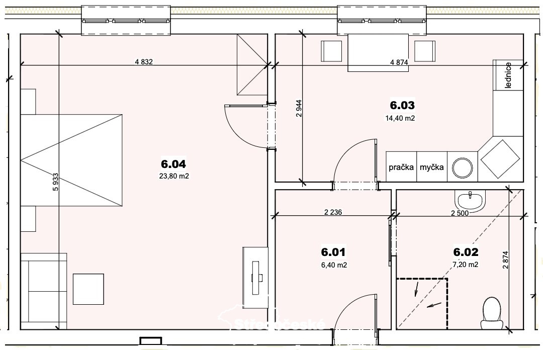 Byt 1+kk (č.6, dům Fanda), parkovací stání