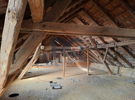 Nabízíme k prodeji zajímavou nemovitost, kterou lze využít k různým účelům. Leží na vyvýšeném kraji obce Myštice, nově vyměřeném pozemku o vel. 1200 m2 a poskytuje krásné výhledy na vyhlášený rybník Labuť a do okolní krajiny. Zděná stavba se rozprostírá na 989 m2 ve třech podlažích, z toho dvou podkrovních. Krovy i stavba jsou v dobrém stavu. Možnost napojení na obecní vodovod, odpady lze vyřešit domovní ČOV, elektřina je zavedena. Rekonstrukcí lze vybudovat jedinečné bydlení například v industriálním stylu, dvougenerační bydlení a získat tak pozemek s nemovitostí za zajímavou cenu či využít objekt k podnikatelskému záměru. Prosklením štítu získáte krásné výhledy na rybník a každodenní západy slunce. Momentálně je nemovitost pronajata jako sklad do konce roku 2025. Přijeďte navnímat jedinečnost lokality, ráda Vás provedu.