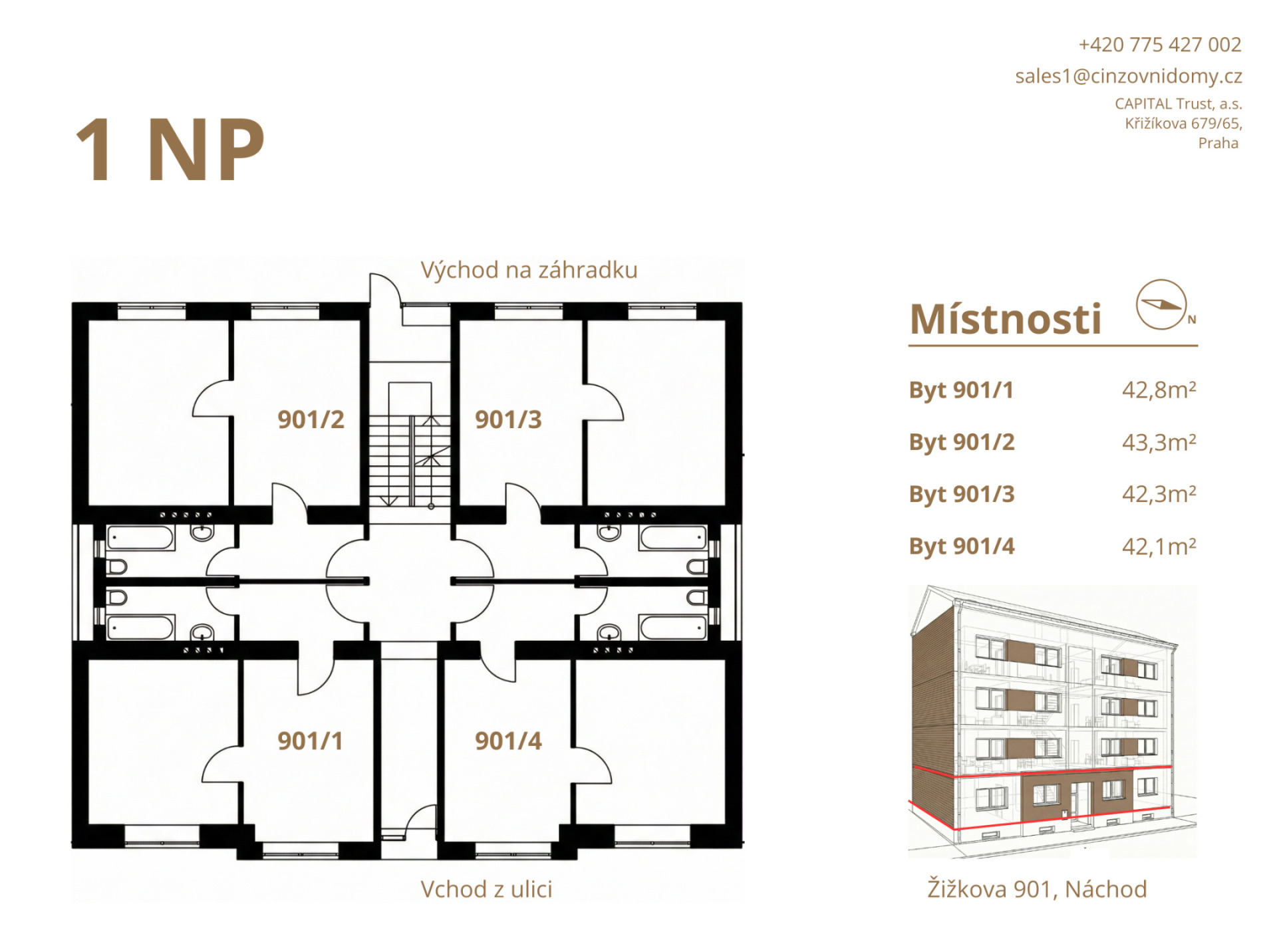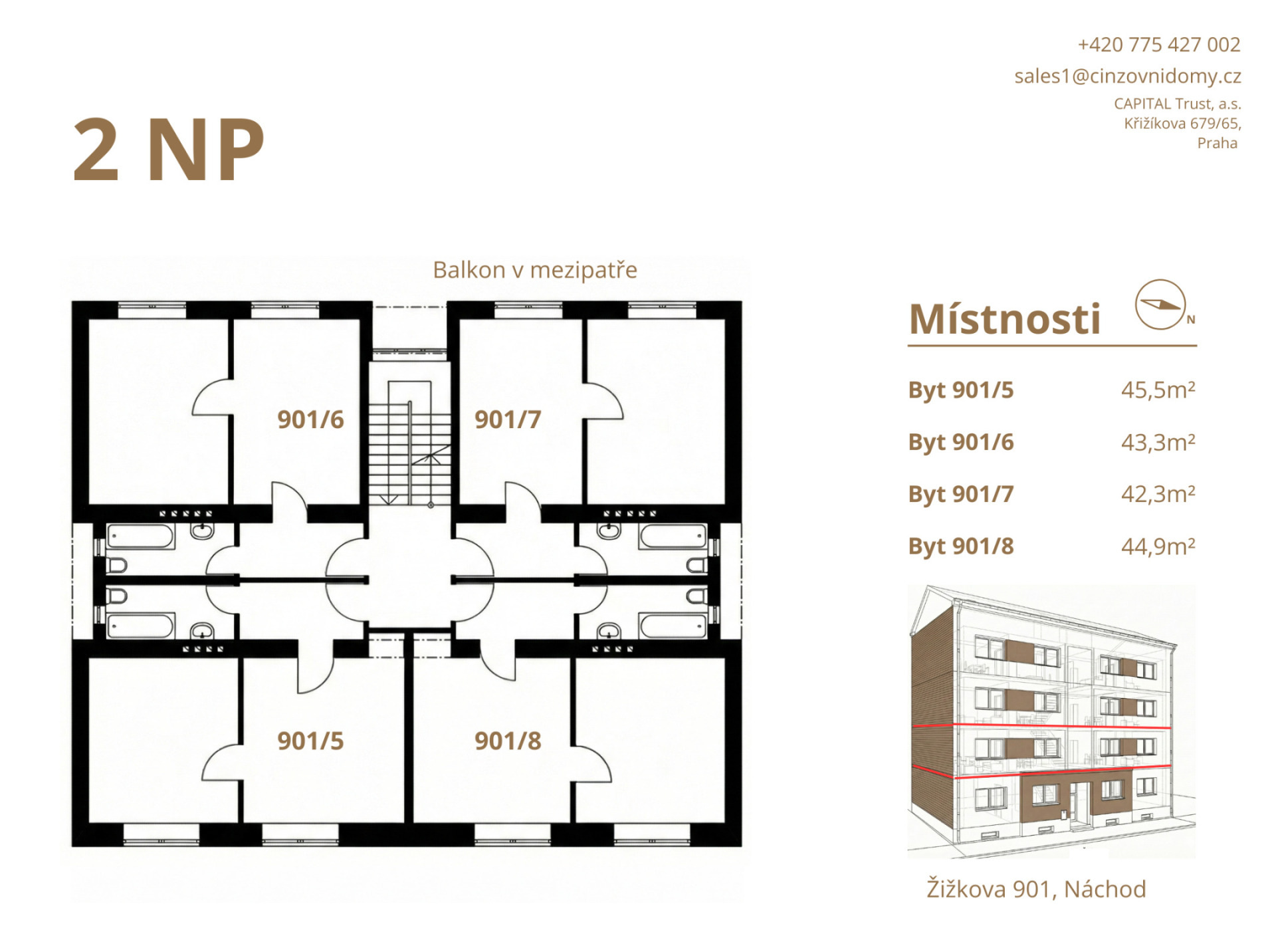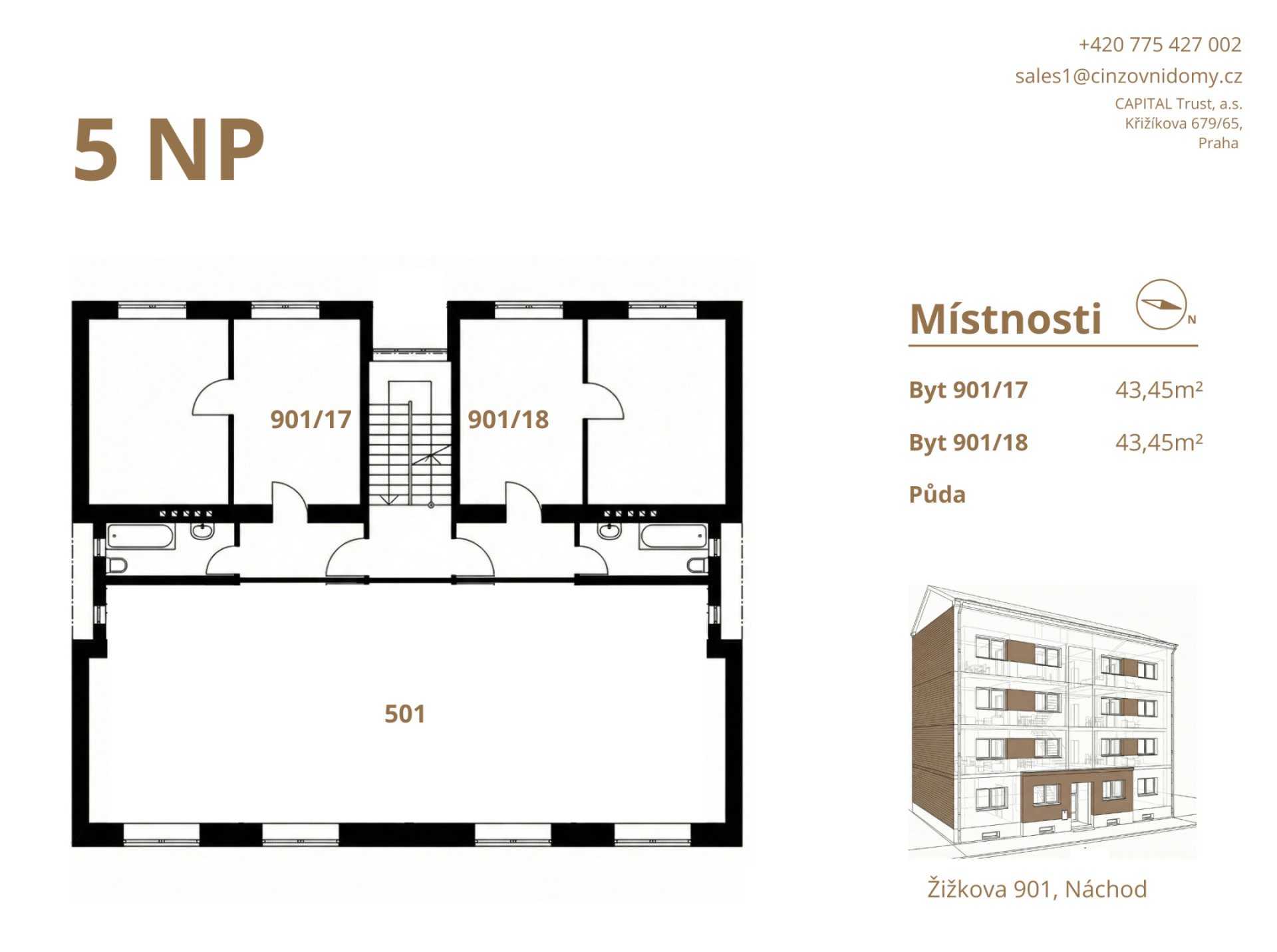 Nabízíme k prodeji atraktivní nájemní bytový dům v ulici Žižkova ve městě Náchod, v docházkové vzdálenosti od centra města a nádraží Náchod. Dům se skládá z 5 nadzemních podlaží a 1 podzemního, 18 bytových jednotek, půdy a vnitrobloku. Všechny byty jsou v malometrážní dispozici 2+kk o výměře 42–45 m². Ke každému bytu náleží samostatná sklepní kóje, umístěná v suterénu domu. V současnosti je 16 bytů dlouhodobě pronajato a 2 jednotky jsou volné. Aktuální roční příjem z nájmu 16 bytů činí 1.756.800 Kč a výnosu 4,1 % p.a. Potenciální roční výnos 2.080.800 Kč, tedy přibližně 4,9 % p.a. Objekt prošel kompletní rekonstrukcí bytových jednotek i společných částí domu, včetně sklepních prostor. Veškeré rozvody jsou nové a splňují aktuální technické normy. Dům byl modernizován s důrazem na snížení energetické náročnosti, v domě proběhla instalaci fotovoltaické elektrárny (FVE) a kamerového systému. Díky tomu jsou provozní náklady optimalizovány a dům nepotřebuje další investice. Dům je zateplený. Lokalita je dlouhodobě vyhledávaná jak místními obyvateli, tak nájemníky pracujícími v regionu, zajišťuje stabilní poptávku po nájemním bydlení. Významným faktorem budoucího zhodnocení je rovněž plánovaná výstavba obchvatu města Náchod, jehož realizace je očekávána do roku 2028. Pokud Vás bytový dům zajímá nás neváhejte kontaktovat a rádi se domluvíme na prohlídku.