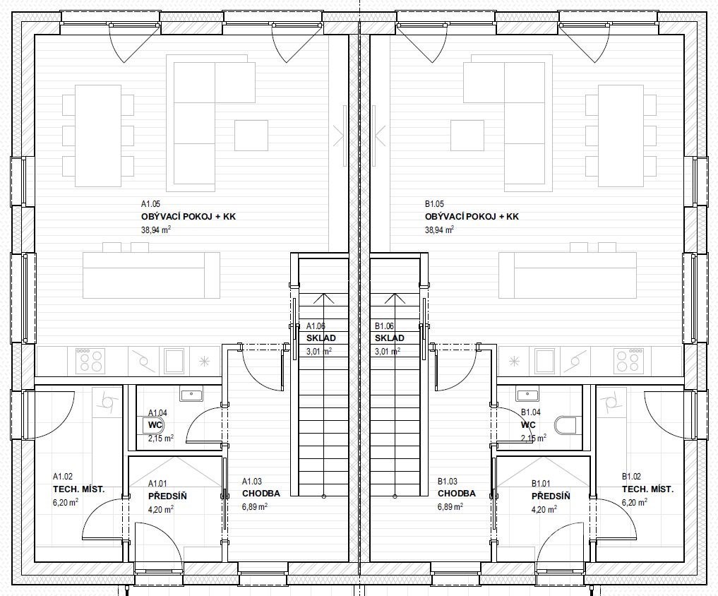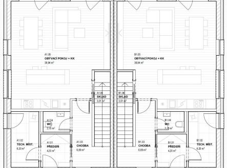 Moderní nízkoenergetický dům 4+kk se zahradou a pracovnou, v klidné lokalitě u Příbrami V projektu Zelená Narysov nabízíme k prodeji novostavbu prostorného rodinného domu 4+kk o podlahové ploše 124,49 m² s pozemkem o velikosti 445 m². Jednotka je součástí moderního dvojdomu, ve kterém má každá bytová jednotka vlastní vstup, soukromou oplocenou zahradu a dvě parkovací místa na zpevněné ploše. Dům je navržen v nízkoenergetickém standardu, který kombinuje vysoký komfort a dlouhodobou úsporu provozních nákladů. Součástí ceny je tepelné čerpadlo vzduch–voda napojené na podlahové vytápění, fotovoltaický systém, plastová okna s trojsklem a venkovními roletami, dokončené koupelny, finální podlahy, interiérové dveře, oplocení a parkování na vlastním pozemku. Dispozice domu je navržena s důrazem na praktické členění a rodinné fungování – vzdušný obývací pokoj s kuchyňským koutem má přímý vstup na terasu a zahradu. Dále jsou zde tři ložnice, samostatná toaleta, koupelna s vanou a technická místnost. Velká hlavní ložnice nabízí příjemný bonus v podobě vlastní koupelny se sprchovým koutem, šatny a oddělené pracovny – ideální kombinace pro pohodlné soukromí i home office. Součástí projektu je možnost dokončení domu na klíč přesně dle vašich představ, včetně kuchyňské linky, vestavěného nábytku nebo terasy. Zelená Narysov je moderní rezidenční projekt situovaný v malebném prostředí nedaleko brdských lesů. Klidná atmosféra menší obce se zde přirozeně doplňuje s výbornou dostupností do Příbrami i Prahy. Lokalita se postupně rozvíjí – v budoucnu zde vznikne školka, dětské hřiště i nabíjecí stanice pro elektromobily, což dále zvyšuje kvalitu života v místě a přirozenou hodnotu vaší nemovitosti. Tento dům je ideální volbou pro rodinu, která hledá moderní a úsporné bydlení s dostatkem prostoru, soukromí a přírody. Rádi vás provedeme osobně. Kontaktujte nás pro více informací nebo domluvení prohlídky.