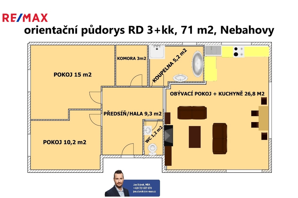 Ve výhradním zastoupení majitele nabízíme k prodeji moderní rodinný dům s ojedinělou zahradou, který se nachází v obci Nebahovy, 5 km východně od Prachatic. Dům byl vystavěn a kolaudován v roce 2017. Vzhledem k použitým materiálům, stylu výstavby a nadstandartní údržbě by se dalo bez nadsázky hovořit o téměř novostavbě. Zděný dům se zateplovacím systémem nabízí dispozičně 3+kk, podlahová plocha 71 m2. Dům není podsklepen, půda slouží jako skladovací prostor, orientační půdorys ve fotogalerii. Součástí domu je rozměrná kovová terasa, podlaha betonová dlažba. Voda čerpána obecní, odpady ČOV. Vytápění domu řešeno elektrokotlem v kombinaci podlahového topení a radiátorů. Umístění domu je na oploceném pozemku s vjezdovou bránou, celková výměra 899 m2. Na zahradě si dal majitel opravdu záležet. Jsou provedeny kvalitní zemní a zahradnické práce okolo celého domu vč. předzahrádky. Je zde vysázeno cca 900 ks dřevin, keřů a květin. Parkování před domem, kde je zároveň umístěn zahradní domek. Vzhledem k úpravě a osázení zahrady, kdy je pouze jeden přímý soused, toto vše zaručuje majiteli nemovitosti klid a soukromí. Pro více informací, nebo zájmu o prohlídku kontaktujte makléře nabídky. Rádi a zcela zdarma vám pomůžeme vyřídit financování na případný nákup nemovitosti.