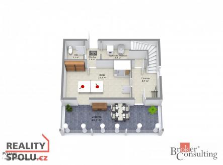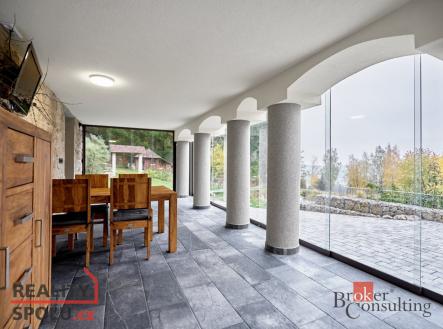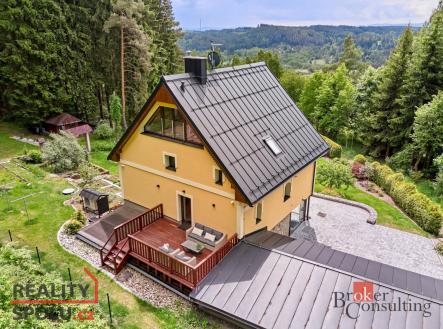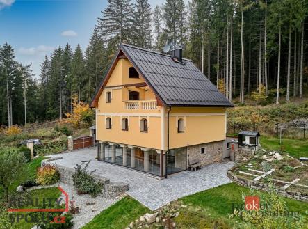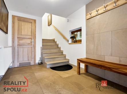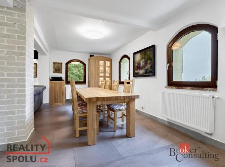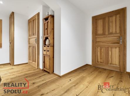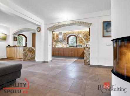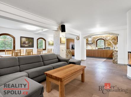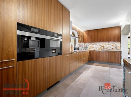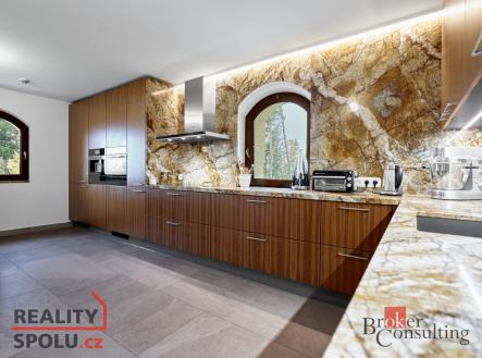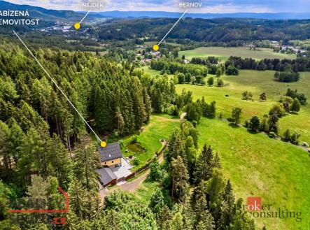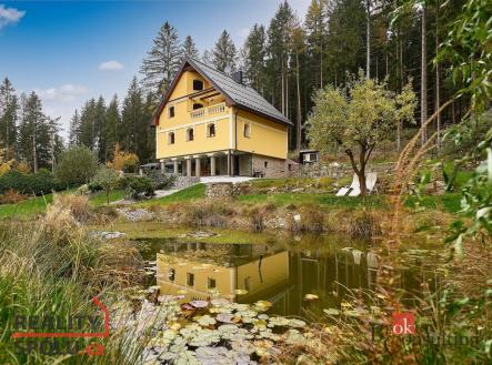 Dům, který šeptá příběhy lesa.. Na samotě u lesa, kde se čas zpomaluje a příroda šeptá každým poryvem větru, stojí dům. Ne jen tak ledajaký. Dům, který vznikl z touhy po svobodě, klidu a smysluplném životě. Dům, který neoslňuje luxusem jen na efekt, ale krásou, co trvá. Na první pohled vás obejme vůně dřeva. Jasan tu není dekorací, ale duší prostoru. Schodiště, zárubně, dveře… vše navazuje jedno na druhé jako melodie, která ladí s přírodou za okny. Nábytek z masivu zrozený z rukou řemeslníků, teplo z krbu, které proudí celým domem jako tep srdce. Každý detail je promyšlený. Čtyři podlaží propojená dřevěným schodištěm z jasanu, 231 m² užitné plochy a přesto útulno, v podkroví okno do korun stromů. V každém koutě tohoto domu je cítit, že tu někdo věděl, co dělá.. a dělal to pro sebe.. srdcem. Kuchyň je poctivá. Ručně dělaná, s kamennou deskou a spotřebiči, které nezklamou. A podlahy? Ty znají jen bosou nohu a domácí pohodu, díky podlahovému vytápění. Prostorná zimní zahrada je chrámem světla. Vedle ní infrasauna z kanadského cedru, jako úkryt pro unavené tělo. A pak pozemek. Přes 2200 m² volnosti. Dvůr střežený kamerovým systémem. Tři vjezdy, parkování pro šest aut, a ze stájí řehtání koní. A to ticho. Takové to opravdové, co už ve městech přestalo existovat. Tady příroda není kulisou, ale součástí každého dne. Jezírko uprostřed zeleně, zahrada jako ze starého herbáře, vůně dřeva a bezpečí zdí, které znají jen lásku. Dům.. tak dokonale technicky vybavený a zároveň duší tak klidný.. Není jen dům. Je to příběh. A možná právě ten Váš.