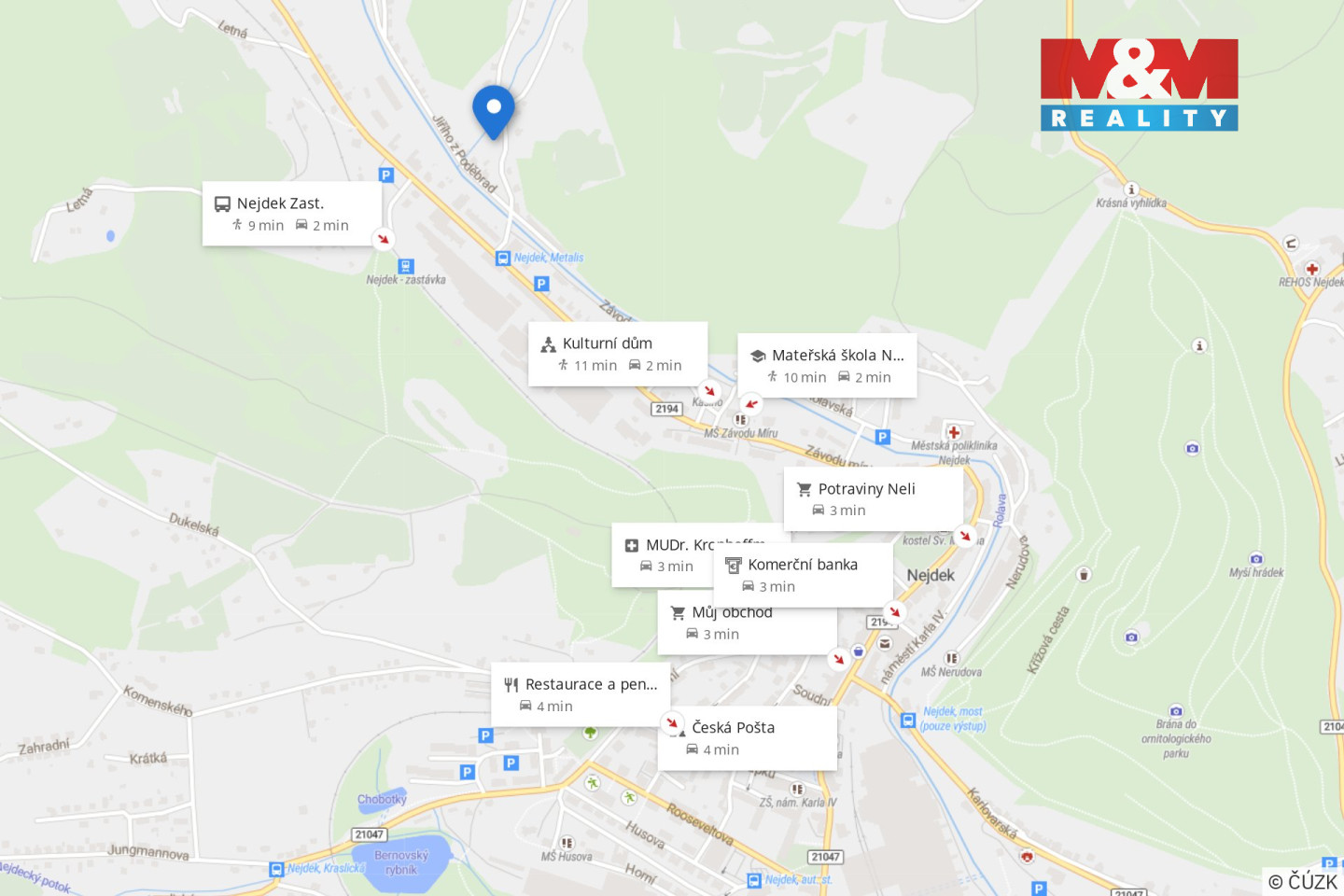 Nabízím k prodeji prostorný rodinný dům v klidné části obce Nejdek. Tato převážně cihlová nemovitost o ploše 138 m² prošla rozsáhlou rekonstrukcí včetně zateplení a je ideální pro rodiny hledající pohodlí a klid v samostatně stojícím domě poblíž krásné přírody. Dům disponuje dvěma nadzemními podlažími a jedním podzemním. Nad nimi najdeme prostornou půdu. Příjemnou atmosféru domova podtrhují krbová kamna umístěná v obývacím pokoji. Z domu plynule vystupuje velká terasa, která nabízí nádherný výhled jak do krajiny, tak na přilehlou zahradu o rozloze 1298 m², která nabízí dostatek prostoru pro zahradničení či odpočinek. V letních měsících pak potěší bazén. V okolí domu najdete také vodní pramen a blízký les. K domu náleží dále garáž a stodola a je kompletně podsklepený, což nabízí další možnosti využití. Jako jeden z mála je dům napojen na obecní vodovod i kanalizaci. Hledáte klidné bydlení v atraktivní lokalitě s veškerou občanskou vybaveností i přírodou na dosah. Neváhejte a ozvěte se.
