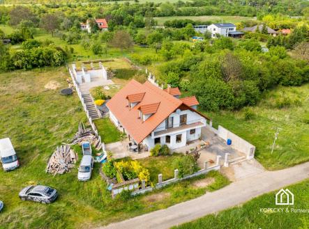Máme pro vás výjimečnou příležitost získat nádherný rodinný dům v klidné a historické obci Nelahozeves. Tento moderní, prostorný a kvalitně postavený dům splní všechna očekávání pro komfortní rodinný život v těsné blízkosti přírody a s výbornou dostupností do Prahy. V přízemí domu se nachází prostorný a světlý obývací pokoj, propojený s moderně zařízenou kuchyní, vybavenou kvalitními spotřebiči. Přímo z obývacího pokoje můžete vstoupit na terasu, která je ideálním místem pro odpočinek, rodinná setkání nebo grilování. Dále je zde samostatná pracovna, praktická koupelna se sprchovým koutem, technická místnost a prostorná garáž pro dvě auta s dílnou. První patro domu nabízí čtyři prostorné ložnice, které zajistí dostatek soukromí a prostoru celé rodině. Hlavní ložnice je velkoryse řešena pro maximální pohodlí, zbývající tři pokoje lze využít jako dětské pokoje, pokoje pro hosty či další pracovny. V horním patře najdete také komfortní koupelnu s vanou a sprchovým koutem, která vám zajistí příjemný relax. Dům je postaven z unikátních tvárnic značky Durisol, které kombinují dřevocementovou štěpku, betonové jádro a polystyren, což zajišťuje špičkové tepelně izolační vlastnosti, vynikající akustickou izolaci a optimální vnitřní klima v každém ročním období. Eurookna doplňují kvalitní provedení domu a přispívají k energetické efektivitě. Pro vytápění domu slouží efektivní kombinace elektrokotle a krbu s výměníkem pro ohřev teplovodního systému. Celé přízemí a koupelna v prvním patře disponují teplovodním podlahovým vytápěním, které poskytuje příjemné teplo a komfort po celý rok. Ostatní místnosti jsou vybaveny radiátory. Střecha je pokryta kvalitní pálenou taškou Tondach engoba a zateplena minerální vatou. Pochozí půda s plochou cca 50 m2 navíc poskytuje dostatek úložného prostoru. Dům je rovněž vybaven moderní čističkou vody pro zajištění vysoké kvality pitné vody. Rozlehlý a atraktivní pozemek nabízí široké možnosti pro venkovní aktivity a relaxaci celé rodiny. Máte zde prostor pro dokončení zahradního altánu a skleníku, což vytvoří dokonalé zázemí pro odpočinek, zahradničení i společné chvíle s rodinou a přáteli. Pozemek poskytuje také ideální prostor pro bazén, dětské hřiště či další volnočasové aktivity dle vašich přání. Nelahozeves je oblíbená lokalita známá nejen krásnou okolní přírodou a klidným prostředím, ale také historickým odkazem slavného skladatele Antonína Dvořáka. Nedaleko se nachází renesanční zámek Nelahozeves, nabízející kulturní vyžití. Obec disponuje základní občanskou vybaveností (škola, školka) a kompletní zázemí je k dispozici v sousedních Kralupech nad Vltavou, jen pár minut autem od domu. Neváhejte nás kontaktovat pro více informací nebo pro domluvení osobní prohlídky. Rádi vás tímto jedinečným domem provedeme!