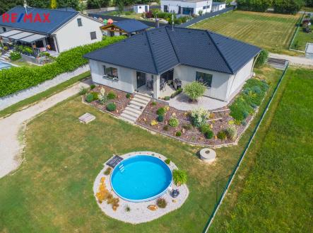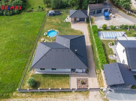 Hledáte moderní rodinný dům v klidné lokalitě? Nabízíme Vám prodej novostavby rodinného domu 4+kk v obci Němčovice, okres Rokycany, kolaudováno v roce 2020. Rodinný dům s užitnou plochou 169 m², pozemek kolem domu o výměře cca 1040 m², studna, oplocení včetně pojízdné brány, samostatnou brankou a inženýrské sítě na pozemku (elektřina, voda z vlastní studny, a kanalizace). Dům nabízí prostornou vstupní chodbu, samostatnou toaletu, technickou místnost, prádelnu na pračku a sušičku, prostorný obývací pokoj s jídelnou a kuchyňským koutem včetně vestavěné spíže na potraviny. Z obývacího pokoje s kuchyní je vstup na terasu se zahradou, kde v letních měsících oceníte možnost vlastního bazénu. Dále dva dětské pokoje a ložnici, velkou koupelnu s vanou, sprchovým koutem, druhou toaletou a umyvadlem. Na zahradě se nachází veliká garáž a přístřešek na další vůz, zahradní domek. Vytápění je řešeno podlahovým topením, tepelným čerpadlem značky Carrier. Je zde příprava pro kotel na tuhá paliva v technické místnosti. Ohřev vody je řešen pomocí el.bojleru. Podlahové krytiny plovoucí podlahy a keramické dlažby. Vjezdová vrata i garážová vrata na dálkové ovládání. Celkové sladění materiálů a barev na této nemovitosti je elegantní a vkusné. Rodinný dům je světlý, slunný a stavěný s důrazem na nízké náklady. Nemovitost se nachází na velmi klidném místě a je ideálním řešením pro ty, kteří hledají kombinaci klidného bydlení s výhodami městské infrastruktury na dosah ruky. Veškerá občanská vybavenost je v 3 km vzdálené obci Radnice (MŠ, ZŠ, obchody, zdravotní zařízení, hotel, restaurace, tenisové kurty atd. ). Napojení severního Rokycanska na dálnici D5 je dokončeno, což ještě více zlepší dopravní dostupnost. Zaujala Vás tato nemovitost? Neváhejte se na mě obrátit a domluvit si prohlídku.