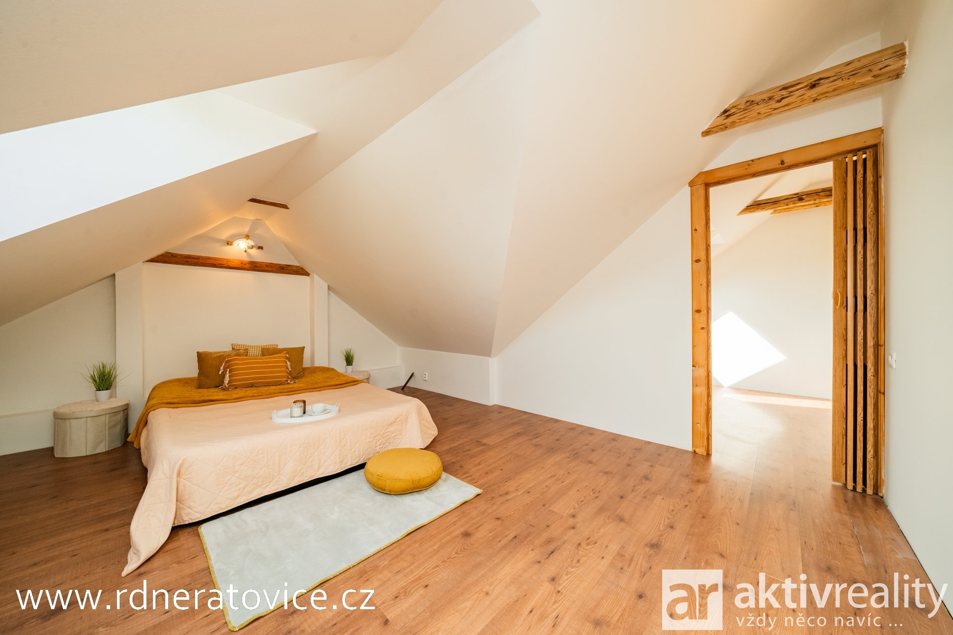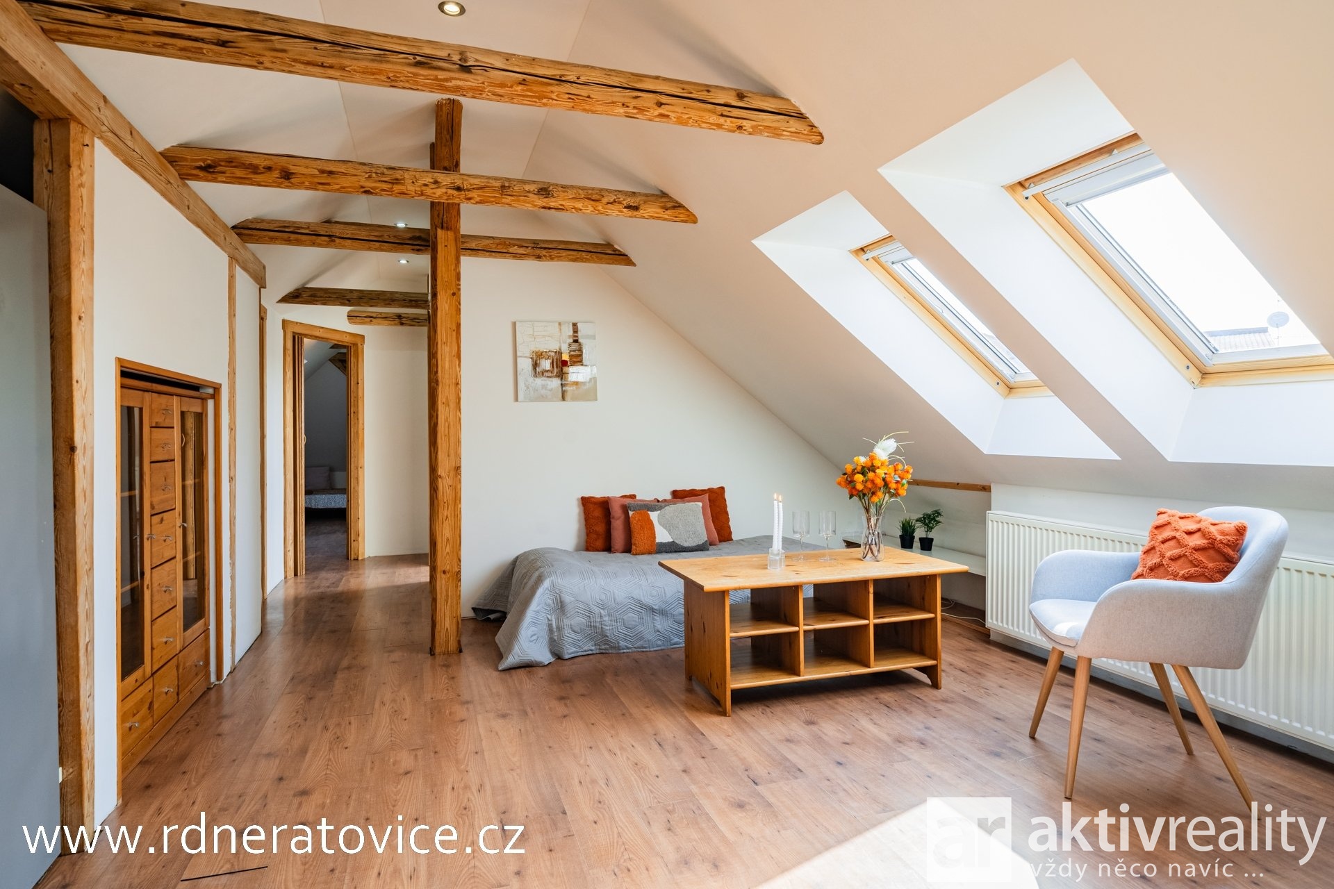 Prodej dvougeneračního domu se dvěma byty a garážemi – ideální pro rodinu nebo investici. Pro více informací se podívejte na webové stránky uvedené na fotografiích. Nabízíme k prodeji prostorný rodinný dům se dvěma samostatnými bytovými jednotkami (3+1 a 4+kk), každá s vlastním vstupem a garáží. Dům se nachází v klidné lokalitě a nabízí dostatek místa pro vícečlennou rodinu nebo možnost vícegeneračního bydlení. *Přízemí 3+1 (114 m²) Vstup do bytu je přes verandu a prostornou chodbu s úložným prostorem. Najdete zde kuchyň, obývací pokoj, který je propojen ze dvou pokojů – můžete tak získat další pokoj navíc s průchodem do ložnice. V obývacím pokoji je krb s mramorovým obložením. Dětský pokoj (část využívaná jako pracovna se zvýšenou podlahou), koupelna, ze které se vstupuje do podsklepené části, kde se nachází kotel na vytápění a bojler na ohřev vody. Dále je v chodbě samostatné WC a spíž. Byt prošel v letech 2003–2004 rekonstrukcí (nové rozvody elektřiny, podlahy, dveře, opravená fasáda). Okna jsou původní, dřevěná. *Podkroví 4+kk (114 m², kolaudace 2010) Do podkroví vejdete přes vstupní chodbu po schodišti s dřevěnými stupnicemi. Dispozice nabízí obývací pokoj s jídelnou a kuchyní na míru (myčka Bosch, sklokeramická deska Fagor), ložnici, dětský pokoj, pracovnu, technickou místnost a koupelnu s vanou, WC, přípojkou na pračku a vstupem na balkon. Byt má vlastní měřiče vody, elektřiny i plynu. Vytápění a ohřev vody zajišťuje plynový kotel. *Další přednosti domu: • Pozemek o výměře 584 m2 • Každá jednotka má svou garáž • Na pozemku se nachází kůlny, bazén, zastřešené posezení s krbem, vzrostlé stromy a okrasné keře • Střešní krytina z roku 2011 • Dům není zateplený, ale je ve velmi dobrém stavu Neratovice nabízí pohodlné bydlení – dvě základní školy, školky, gymnázium, obchody, lékaři i výborné vlakové a autobusové spojení do Prahy. Hledáte prostorný dům pro dvě generace nebo investiční příležitost? Zavolejte a domluvte si prohlídku.