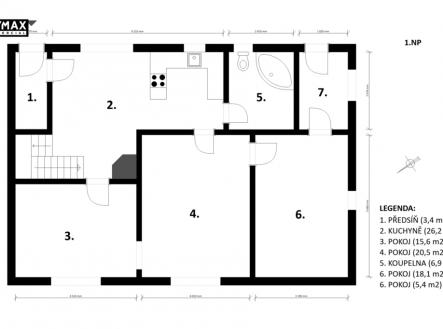 Dvoupodlažní rodinný dům o podlahové ploše 152 m² stojí na pozemku o výměře 264 m² v obci Mlékojedy, přímo u řeky Labe a na konci klidné slepé ulice, na kterou navazuje cyklostezka. Dům je určen k celkové rekonstrukci. Hlavní přednosti nemovitosti: • Klidné umístění u Labe – dům se nachází na konci slepé ulice s minimálním provozem, pár kroků od cyklostezky a hned u Labe. V okolí je spousta zeleně a nic vás tu nebude rušit. • Skvělá dostupnost za prací do Prahy a Mělníka – autem jste v Mělníku za 15 minut, v Brandýse nad Labem za 20 minut a v Praze–Letňanech do půl hodiny. • Dům je prázdný a připravený k rekonstrukci – můžete začít ihned a upravit si dispozici i styl domu přesně podle svých představ. Dispozice a popis domu: V přízemí se nachází vstupní předsíň, centrální obytná místnost s kuchyňským koutem, krbem a schodištěm do podkroví. Dále jsou zde tři samostatné pokoje a boční vchod. Kuchyň je orientována do zahrady na jihovýchod, obytné místnosti do ulice na severozápad. V podkroví se nachází chodba, dva pokoje a balkon. Technické a stavební informace: Dům je zděný, postavený z cihel a tvárnic, se stropy z dřevěných trámů. Střecha je sedlová s plechovou krytinou. Konstrukce odpovídá době výstavby a vyžaduje kompletní rekonstrukci. Úpravy byly již částečně zahájeny, například výměnou oken za plastová. Objekt je napojen na elektřinu, vodovod a kanalizaci. Vytápění v současnosti zajišťuje krb v centrální místnosti. Lokalita: Mlékojedy jsou menší, klidná obec přímo u řeky Labe, která navazuje na Tišice. V obci se nachází obchod, mateřská škola a pivnice. Jen pár minut odtud leží pískovna Tišice – oblíbené místo pro koupání, paddleboarding a relaxaci. Okolí je ideální pro cyklistiku, běh i procházky podél řeky. Do okolních měst i do Prahy dojedete pohodlně autem do 30 minut. Do Neratovic, kde je vlakové nádraží, lze dojít pěšky (cca 1,5 km). Závěr: Další informace Vám makléř rád poskytne telefonicky nebo při osobní prohlídce.