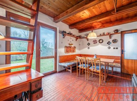 Nabízíme k prodeji rekreační objekt – dům zděný z tvárnic, zateplený polystyrenem, o dispozici 4+kk, který umožňuje celoroční bydlení. Má číslo evidenční, kterým se označují objekty pro rodinnou rekreaci. Lze se zde přihlásit k trvalému bydlení. Informace zde uvedené si propojte s fotografiemi a videem u inzerátu. Dům byl postaven v roce 1986. Zastavěná plocha je 59 m2, je koncipován jako dům s obytným přízemím a obytným podkrovím. Dům je podsklepený, tím jsou k využití technické (skladové) prostory. Vstup do domu je chodbou, zde se odkládají svrchní oděvy a přezouvá se. Dále pokračujete do obývacího pokoje s kuchyňským koutem. V přízemí jsou ještě dvě místnosti využitelné jako obytné pokoje nebo ložnice. Obývák je dřevěným schodištěm propojený s podkrovím. Zde nejsou žádné dělící stěny (přepážky). V současné době jsou zde postele (7) k okamžitému použití. Část podkroví tvoří lodžie (nejlépe ji uvidíte na fotografii exteriéru). V přízemí se ještě nachází koupelna se sprchovým koutem a bojlerem na ohřev vody, oddělené WC a komora. Z obývacího pokoje lze francouzským oknem vyjít na zahradu. Vstupní dveře do domu jsou dřevěné, okna také dřevěná s dvojskly, francouzské okno se žaluziemi je plastové. Vytápění domu je krbovými kamny a dále teplovodními radiátory, které jsou umístěny jak v přízemí, tak v podkroví. Oheň v krbových kamnech navozuje romantickou atmosféru, současně kamna mají dostatečný výkon, aby bylo v přízemí teplo. Čelní stěny domu jsou opatřeny izolací a to plastovým obložením. Na pozemku je studna, voda do domu je přiváděná čerpadlem umístěným ve studni. Odpady jsou svedeny do jímky. Zahrada má plochu 824 m2, součástí zahrady je přístřešek na dříví a nářadí, potom ještě skleník. Je zde dost prostoru pro relaxaci, pro bazén, grilování atd. Pozemek je oplocený. Parkování automobilů lze na pozemku u domu nebo v blízkém okolí. Dům je v dobrém stavebně technickém stavu. Majitel provádí průběžnou údržbu. Do domu je zavedený dvou fázový i třífázová elektrický proud. Lhota je na klidném místě v rekreační oblasti, část majitelů nemovitostí je zde celoročně. Krásná příroda umožňuje věnovat se turistice, cykloturistice, prostředí ocení milovníci toulek přírodou, zájemci o houbaření atd. Ve vzdálenosti cca 10 km je Slapská přehrada a centrum Rabyně, které nabízí možnost koupání, vodní sporty, relaxaci, stravování. Městys Netvořice je vzdálený 3 km, Vysoký Újezd 2 km – do obou míst jezdí autobus ČSAD směrem Jílové u Prahy a Praha. Nabízenou nemovitostí lze zajistit financování - zástavu na hypotéku. S financováním koupě vám zdarma pomůžeme. Další informace získáte u makléře. Dohodněte si prohlídku.
