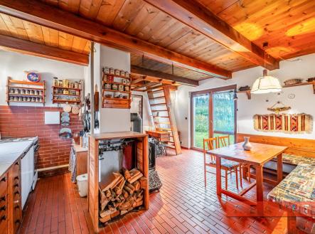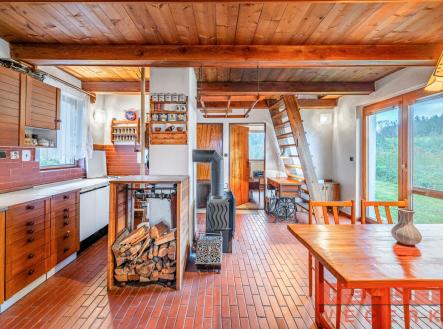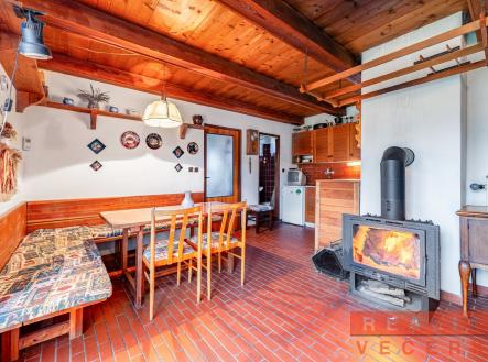 Nabízíme k prodeji rekreační objekt – dům zděný z tvárnic, zateplený polystyrenem, o dispozici 4+kk, který umožňuje celoroční bydlení. Má číslo evidenční, kterým se označují objekty pro rodinnou rekreaci. Lze se zde přihlásit k trvalému bydlení. Informace zde uvedené si propojte s fotografiemi a videem u inzerátu. Dům byl postaven v roce 1986. Zastavěná plocha je 59 m2, je koncipován jako dům s obytným přízemím a obytným podkrovím. Dům je podsklepený, tím jsou k využití technické (skladové) prostory. Vstup do domu je chodbou, zde se odkládají svrchní oděvy a přezouvá se. Dále pokračujete do obývacího pokoje s kuchyňským koutem. V přízemí jsou ještě dvě místnosti využitelné jako obytné pokoje nebo ložnice. Obývák je dřevěným schodištěm propojený s podkrovím. Zde nejsou žádné dělící stěny (přepážky). V současné době jsou zde postele (7) k okamžitému použití. Část podkroví tvoří lodžie (nejlépe ji uvidíte na fotografii exteriéru). V přízemí se ještě nachází koupelna se sprchovým koutem a bojlerem na ohřev vody, oddělené WC a komora. Z obývacího pokoje lze francouzským oknem vyjít na zahradu. Vstupní dveře do domu jsou dřevěné, okna také dřevěná s dvojskly, francouzské okno se žaluziemi je plastové. Vytápění domu je krbovými kamny a dále teplovodními radiátory, které jsou umístěny jak v přízemí, tak v podkroví. Oheň v krbových kamnech navozuje romantickou atmosféru, současně kamna mají dostatečný výkon, aby bylo v přízemí teplo. Čelní stěny domu jsou opatřeny izolací a to plastovým obložením. Na pozemku je studna, voda do domu je přiváděná čerpadlem umístěným ve studni. Odpady jsou svedeny do jímky. Zahrada má plochu 824 m2, součástí zahrady je přístřešek na dříví a nářadí, potom ještě skleník. Je zde dost prostoru pro relaxaci, pro bazén, grilování atd. Pozemek je oplocený. Parkování automobilů lze na pozemku u domu nebo v blízkém okolí. Dům je v dobrém stavebně technickém stavu. Majitel provádí průběžnou údržbu. Do domu je zavedený dvou fázový i třífázová elektrický proud. Lhota je na klidném místě v rekreační oblasti, část majitelů nemovitostí je zde celoročně. Krásná příroda umožňuje věnovat se turistice, cykloturistice, prostředí ocení milovníci toulek přírodou, zájemci o houbaření atd. Ve vzdálenosti cca 10 km je Slapská přehrada a centrum Rabyně, které nabízí možnost koupání, vodní sporty, relaxaci, stravování. Městys Netvořice je vzdálený 3 km, Vysoký Újezd 2 km – do obou míst jezdí autobus ČSAD směrem Jílové u Prahy a Praha. Nabízenou nemovitostí lze zajistit financování - zástavu na hypotéku. S financováním koupě vám zdarma pomůžeme. Další informace získáte u makléře. Dohodněte si prohlídku.