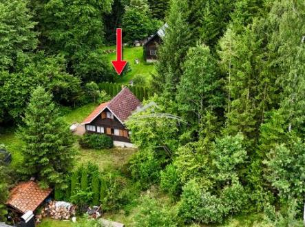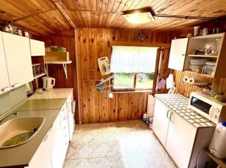 Ve výhradním zastoupení nabízíme velmi pěknou dřevěnou chatu 2+1 na vlastním pozemku o výměře 837 m², situovanou na výjimečném místě uprostřed lesa s naprostým klidem a soukromím. Pozemkem částečně protéká malý potůček, což jen podtrhuje atmosféru místa.Chata z roku 1980 stojí na zděné podezdívce. Je napojena na elektřinu (220 V, částečně měděné rozvody) a užitkovou vodu z vlastní studny (čerpadlo). Součástí je moderní koupelna se sprchovým koutem, splachovacím WC, přípojkou na pračku a bojlerem (47 l). O vytápění se starají kamna na dřevo a tuhá paliva, odpad je řešen jímkou. Před chatou se nachází menší terasa, která má udělanou podlahu z desek Ve výhradním zastoupení nabízíme velmi pěknou dřevěnou chatu 2+1 na vlastním pozemku o výměře 837 m², situovanou na výjimečném místě uprostřed lesa s naprostým klidem a soukromím. Pozemkem částečně protéká malý potůček, což jen podtrhuje atmosféru místa.Chata z roku 1980 stojí na zděné podezdívce. Je napojena na elektřinu (220 V, částečně měděné rozvody) a užitkovou vodu z vlastní studny (čerpadlo). Součástí je moderní koupelna se sprchovým koutem, splachovacím WC, přípojkou na pračku a bojlerem (47 l). O vytápění se starají kamna na dřevo a tuhá paliva, odpad je řešen jímkou. Dispozice: v přízemí předsíň, obývací pokoj, kuchyň, koupelna s WC; v podkroví ložnice. Na pozemku je také menší uzamykatelný zahradní domek (cca 2 × 2 m) a úložné prostory na nářadí. Před chatou se nachází menší zpevněná nezastřešená terasa, která má udělanou podlahu z profilů zn. GRENADECK.Příjezd možný autem až k chatě. Ihned volná k užívání. Místo ideální pro relax, soukromí a odpočinek v přírodě.