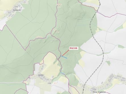 Lesní pozemek o výměře 5079 m2, parcelní číslo 953/130, podíl 1/1, katastrální území Nová Hradečná, obec Nová Hradečná, obec s rozšířenou působností Uničov, okres Olomouc, Olomoucký kraj.