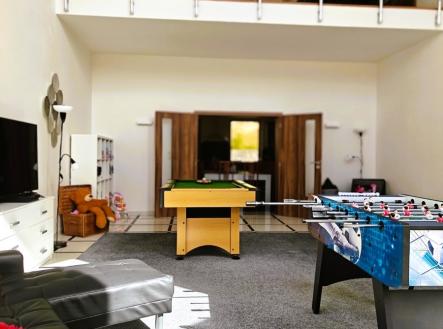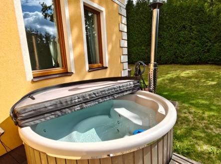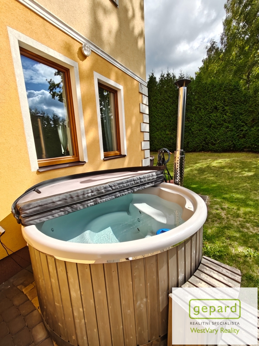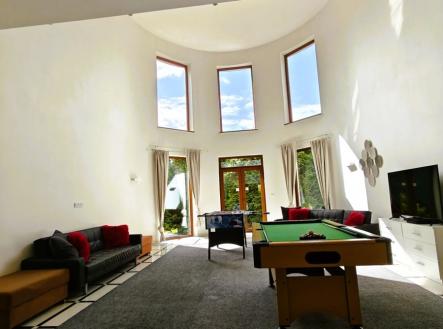 Nabízíme k prodeji luxusní rodinný dům o celkové dispozici 9+kk. Prostorný dům o celkové užitné ploše 310m2 se zahradou 1272 je situován v klidné části Mezirolí přímo u lesa, v areálu dalších rodinných domů, který je zcela oplocen. Většinu vstupního podlaží zaujímá velkoryse pojatý obývací pokoj s navazující kuchyní, jídelnou a salonem, samostatně se zvláštním vstupem je zde kancelář. Dispozice domu: v přízemí vstup do vzdušné haly s kuchyní, obývacím prostorem v něj jsou automatické krbové kamna na pelety s dálkovým ovládáním přes aplikaci, kancelář a herna se vstupem na zahradu. Samostatný pokoj oddělený od společenské části domu, vhodný jako pracovna, ložnice pro návštěvy. Koupelna s toaletou a sprchovým koutem, technická místnost. V patře je šatna a 3 ložnice, všechny mají samostatnou koupelnu se sprchovým koutem nebo vanou a saunou. Z galerie 1. patra je výhled do obývací části domu a balkon nad kanceláří s výhledem do lesa. Dostatek parkovacího místa na vlastním pozemku. Rodinný dům je vytápěn ústředním teplovodním topením se zdrojem v nověji instalováním TČ z el. zásobníku Patrová stavba RD s valbovou střechou na složitém krovu. Je stavěna jako zděná stavba ze zdiva systému Porotherm s plošným zateplením fasády. Stropy jsou ŽB systému LIAPOR, schodiště ŽB monolitické. Okna dřevěná trojitě prosklená, dveře dřevěné masivní do oblož. zárubní. Podlahy v obyt. místnostech dřevěné plovoucí, ostatní z keram. dlažby. Je proveden rozvod EI 220/380V, rozvod ZTI. ÚT je s TČ vzduch/voda s technologií v tech. místnosti, kde je i el. zásobník TVU. Radiátory jsou deskové, popř. teplovzduš. konvektory jsou umístěny v podlaze obývacího pokoje. V budově jsou 4 koupelny s WC buď se sprch. koutem, nebo vanou a sprch. koutem. Kuchyně je plně vybavena. K domu je přistavěna prostorná přízemní garáž, která je dispozičně propojena s hl. budovou. Jde tak o velmi prostorný, nadstandardní RD s moderními prvky tech. vybavení. Technický stav je velmi dobrý, stavba je užívána, je však udržována - průběžně jsou prováděny opravy a výměny prvků. Odhadované náklady na energie domu cca 7.500,-Kč měsíčně. V okolí les, rybník. Výborná dostupnost do spádové obce. V docházkové vzdálenosti i mateřská škola.