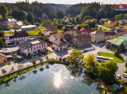 K investiční příležitosti nebo vícegeneračnímu bydlení nabízíme výjimečný historický dům po rekonstrukci v podzámčí rokokového zámku v obci Nové Hrady. Dům leží ve velmi atraktivní a vyhledávané turistické lokalitě. Ve 2.NP se nachází luxusní podkrovní apartmán s přiznanými trámy 3+kk (kolaudace v 2022,120 m2). Najdete zde obývací pokoj s kuchyní, 2 ložnice a koupelna s WC a sprch. koutem a je vytápěn el. panely nebo klimatizací. V 1.NP je stylový zámecký apartmán 5+1, 120 m2 (vila je provozovaná k ubytování přes booking.com, známka 9,5). Zámecký apartmán má 4 ložnice, obývací pokoj, kuchyň, chodbu s WC a koupelnou. V přízemí je pak prostorný sál se zázemím, WC, chodba s recepcí (sál byl zkolaudovaný jako prodejna, atraktivní ke zřízení kavárny, popř. wellness k apartmánům). Za domem se nachází malebný uzavřený dvůr s posezením (využití se nabízí u kavárny). Dvůr částečně zastřešuje dřevěná stavba (sál) s věžičkou. Je zde možnost RD rozdělit na několik samostatných bytových jednotek.