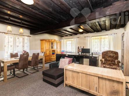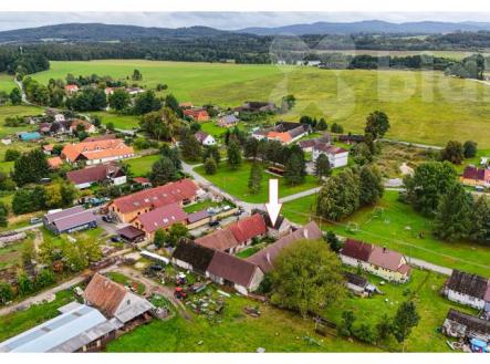 Prodej vesnického statku se dvěma domy, Byňov u Nových Hradů Nabízíme k prodeji jedinečný vesnický statek v obci Byňov u Nových Hradů. Uzavřená usedlost s pozemkem o velikosti 2 253 m2 a zastavěnou plochou přibližně 840 m2 poskytuje velkorysé zázemí pro rodinné bydlení i podnikání. Součástí statku jsou dva rodinné domy s čísly popisnými, první dům je o dispozici 2+1 a druhý 4+1. Díky tomu se jedná o ideální místo pro vícegenerační nebo velkou rodinu, stejně tak jako o atraktivní investici s možností rozdělení na několik samostatných jednotek, využití pro komerční účely nebo práci z domova. Výjimečnou atmosféru podtrhuje téměř 200 let starý dřevěný strop ve velmi dobrém stavu, který dokládá historii a autenticitu jihočeského venkova. Nemovitost nabízí bohaté hospodářské a technické zázemí. Najdete zde velkou bývalou stáj, kterou lze využít jako dílnu, sklad nebo ji přestavět k bydlení, dále prostornou garáž pro několik vozidel, stodolu na dřevo a řadu dalších skladovacích prostor. Na třech samostatných zahradách rostou dva vzrostlé ořešáky a více než patnáct mladších stromů a keřů s ovocem a ořechy. Široká soukromá příjezdová silnice na pozemku umožňuje pohodlné parkování pro více aut. Statek se nachází v centru obce, pouhých 1,5 km od vlakového nádraží s přímým spojením do Českých Budějovic a Českých Velenic/Gmündu. Dojezdová vzdálenost do Nových Hradů je přibližně 5 minut, do Třeboně 20 minut, do Českých Budějovic 35 minut a do rakouského Gmündu či Českých Velenic kolem 15 minut. Okolí Novohradských hor nabízí nepřeberné možnosti pro turistiku, cyklovýlety, houbaření i relaxaci v přírodě. Nemovitost je vhodná nejen pro komfortní bydlení, ale i pro rekreaci či podnikatelský záměr. Rádi vám pomůžeme s vyřízením výhodného financování. Uvedené rozměry jsou pouze orientační. Rádi vám pomůžeme s vyřízením výhodného financování. Uvedené rozměry jsou pouze orientační.