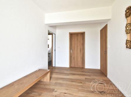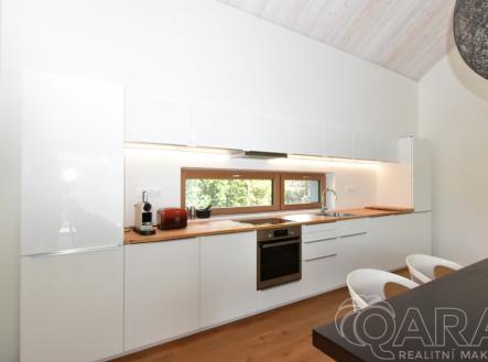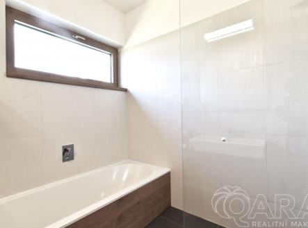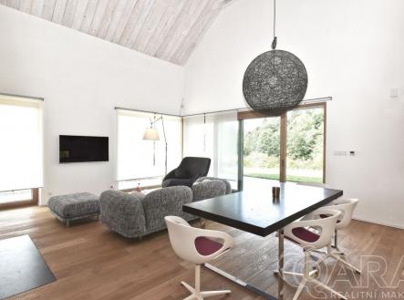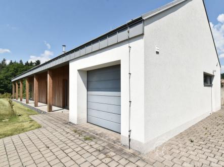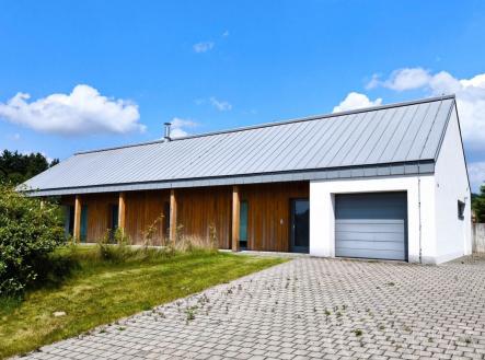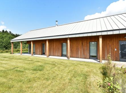 Na okraji Nového Města na Moravě, v nové zástavbě, najdete moderní architektonický koncept bezbariérového domu dispozice 4+KK, navržený kanceláří Labor13 jako plynulé propojení vzdušného interiéru s prostornou terasou a zahradou i okolní krajinou. Srdcem domu je prostorný obývací pokoj (40 m2) s vysokým stropem, moderní kuchyní a krbem. Velkoformátová okna jsou orientována do zahrady, výstupem na terasu a pohledem a na okolní lesy. Navazující chodba vás zavede do dvou ložnic (12,5 m2) se samostatnými výstupy do zahrady, a pracovny (11,1 m2) a samozřejmě nechybí prostorná koupelna s vanou, sprchovým koutem a umyvadlem, dále samostatné WC, šatna, vstupní hala a dům končí technickou místností a prostornou garáží a dalšími venkovními stáními. Vytápění a ohřev vody zajišťuje plynový kondenzační kotel s podlahovými rozvody. Z prostoru garáže je řešen výstup do stávajícího půdního prostoru (cca 97 m2), který je možné dále využít dle vašich představ. Užitná plocha přízemí činí 137 m2 a terasa s ochozem téměř 35 m2. Zajímavým prvkem je i dřevěné obložení fasády. Celý dům je obklopen zahradou o výměře necelých 700 m2. Samotné Novoměstsko mnozí považují za nejhezčí kout Vysočiny. Je to kraj malebných kopců, hlubokých lesů a skal. Město se pyšní zámkem, starou radnicí, kostely, muzeem. Nelze opomenout i proslulý lyžařský areál. Nemovitost díky svému umístění a dispozici osloví náročné klienty, kteří hledají nejen klidné prostředí pro život, ale třeba i možnosti bohatého sportovního vyžití.