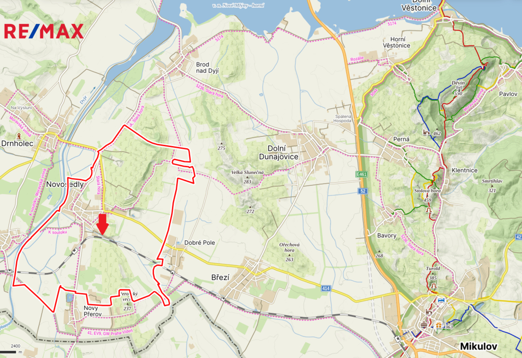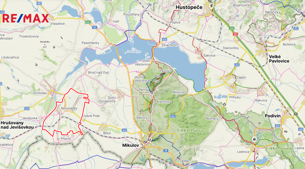 Nabízíme výhradně k prodeji dva sousední, k sobě přiléhající pozemky o celkové výměře 2412 m2 v Novosedlech na Moravě. Jedná se o dobře přístupné, nezastavěné pozemky v lokalitě vinných sklepů a rekreačních objektů. Pozemky jsou situované v zelené, okrajové části obce Novosedly. Pozemek parc. č. 5350/8 má výměru 1 411 m2. Sousední pozemek parc.č. 5350/9 má výměru 1 001 m2. Nabízené pozemky jsou v územním plánu charakterizovány jako území určené k rekreaci, přesněji k individuální rekreaci včetně objektů vinných sklepů. Jedná se o tzv. rekreační plochy v přírodě s určeným způsobem zastavitelnosti. Charakter případné budoucí zástavby na nabízených pozemcích musí splňovat požadavky na stavbu pro individuální rekreaci a respektovat měřítko a druh okolní zástavby. Novosedly, obec v žádané jihomoravské oblasti Mikulova, disponují plnou občanskou vybaveností. Celkové umístění a polohu pozemků lze nazvat jako pěknou, otevřenou, jen s mírně svažitou, slunnou jihozápadní orientací. V místě jsou k napojení inženýrské sítě (voda, elektřina). Pozemky mají dobrou obslužnost a přiléhají k místní okrajové ulici, která přechází v polní cestu. Místo je celkově klidné, v pochozí vzdálenosti od železniční zastávky Novosedly. Autem Hrušovany nad Jevišovkou cca 10 km, Mikulov 12 km. Doporučujeme pro ty, kteří touží poznávat a naplno si užívat krásy jižní Moravy v oblasti Pálavy a Lednicko-valtického areálu v té nejautentičtější podobě, přímo mezi vinohrady, mezi vinnými sklepy, na vinařské stezce, v malebném vinařském kraji.