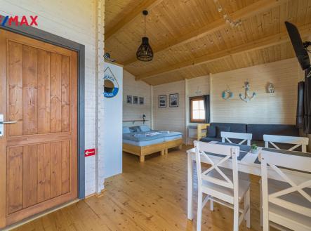 Exkluzivní investiční příležitost: Zánovní rekreační resort u přehrady Krásné. Nabízíme k prodeji kompletně zařízený a zavedený rekreační areál ve vyhledávané lokalitě podhůří Jeseníků – přímo u přehrady Krásné u Šumperka. Tento promyšlený komplex, kolaudovaný v květnu 2023, představuje díky své špičkové kondici a lukrativní poloze ideální investici s okamžitým výnosem. Dispozice a vybavení areálu: Celý resort tvoří 10 samostatných objektů citlivě rozmístěných v terénu tak, aby hostům zajišťovaly maximální soukromí a klid. 8 ubytovacích chatek - Každá disponuje 3 plnohodnotnými lůžky s možností přistýlky. 1 provozní chatka - Slouží jako zázemí recepce pro pohodlný chod resortu. 1 technická chatka - Sloužící jako sklad nářadí. Zázemí: Součástí areálu je dětské hřiště, ohniště s posezením a vlastní parkoviště pro všechny hosty. V těsném sousedství se nachází celoročně provozovaná restaurace. Nadstandardní komfort chatek: Všechny chatky jsou identické, postavené ve třech řadách a nabízejí vysoký standard ubytování. Kuchyňská linka - Myčka nádobí, chladnička s mrazákem, dvouplotýnkový vařič, mikrovlnná trouba a rychlovarná konvice. Vlastní koupelna - Sprchový kout, WC a boiler na teplou vodu (120 l). Terasa - Každá chatka má zastřešenou terasu (10 m²) s relaxačním výhledem přímo na hladinu přehrady. Business potenciál a výnosnost: Areál v současnosti generuje stabilní výnos při provozu (duben–říjen). Pro nového majitele se však otevírá významný prostor pro navýšení profitability. Prodloužení sezóny - Aktuální technický stav a kvalita provedení umožňují rozšíření provozu na další měsíce, což představuje okamžitý nárůst obratu. Rostoucí poptávka - Lokalita Krásné zažívá nárůst zájmu o kvalitní ubytování, což garantuje vysokou obsazenost. Bez investic - Vzhledem k nedávné kolaudaci (2023) a perfektnímu stavu je areál bez nutnosti jakýchkoliv oprav či modernizace. V případě zájmu o tuto výjimečnou nabídku mě neváhejte kontaktovat. Ráda Vám poskytnu veškeré doplňující informace, ekonomické parametry a domluvíme se na osobní prohlídce.